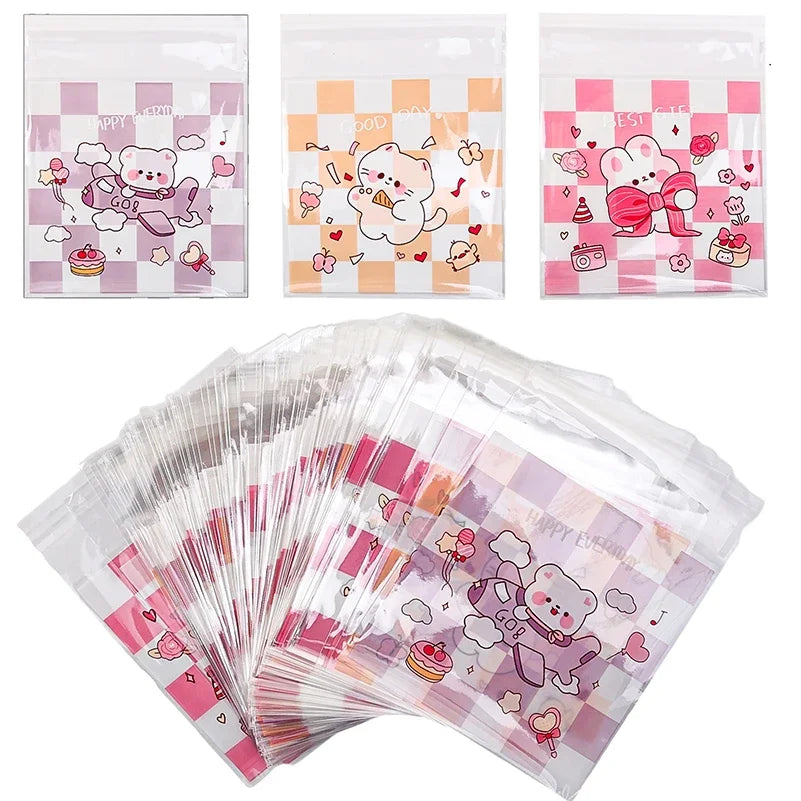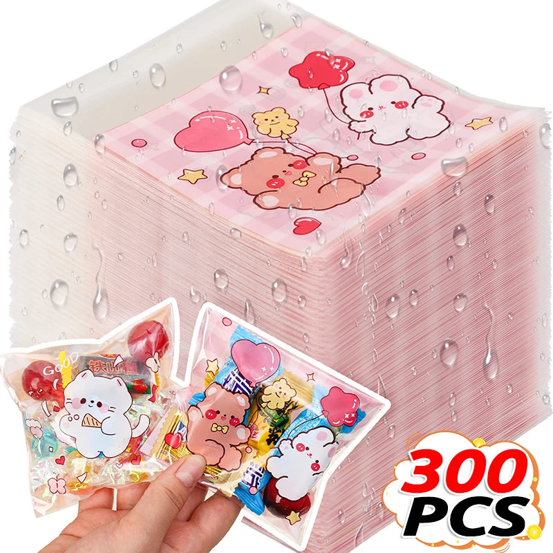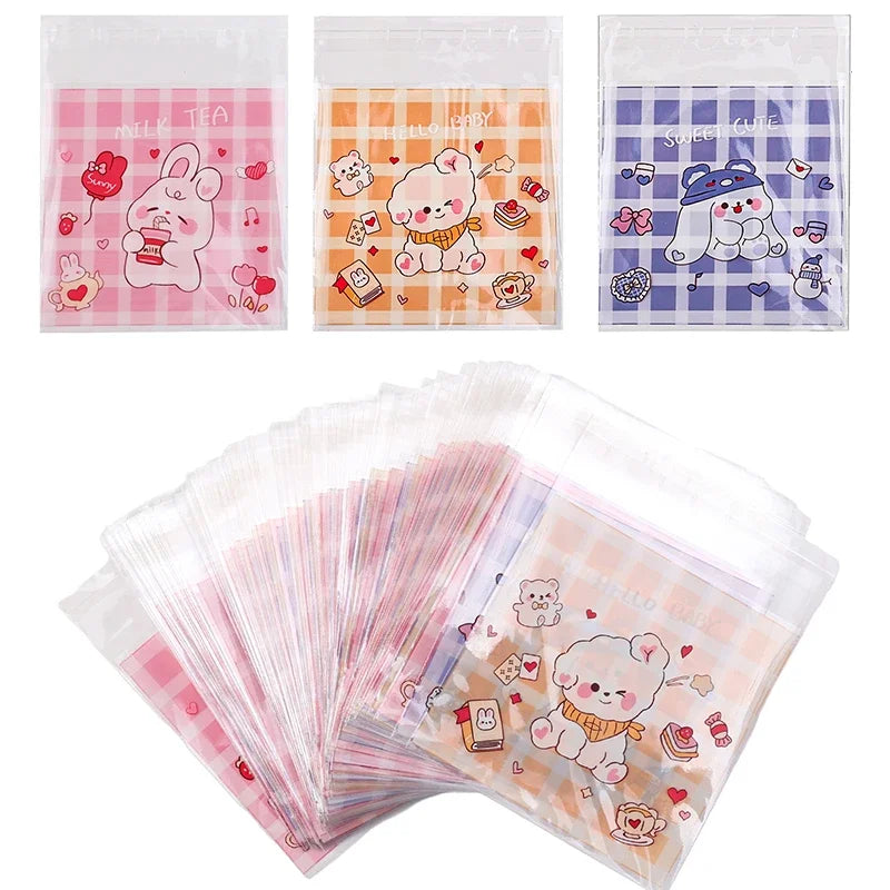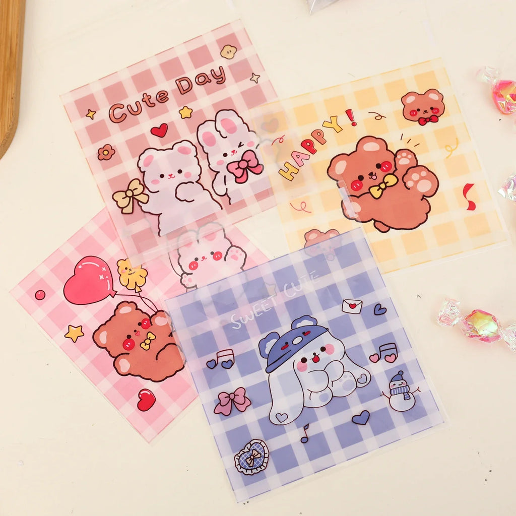 100-300Pcs Easter Cellophane Treat Bags Self-sealing Candy Cookie Bag Cute Little Bear and Bunny Pattern Opp Bag Party Favors