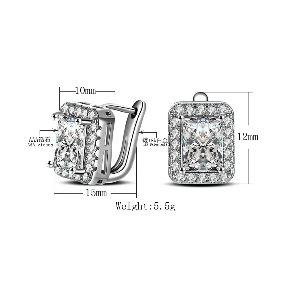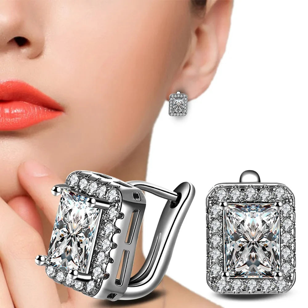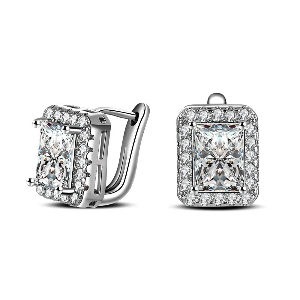 2020 Square 925 Silver Needle Jewelry Big Crystal Stduy Earring for Woman New Gift Wholesale Brincos Boucle D'oreille Femme