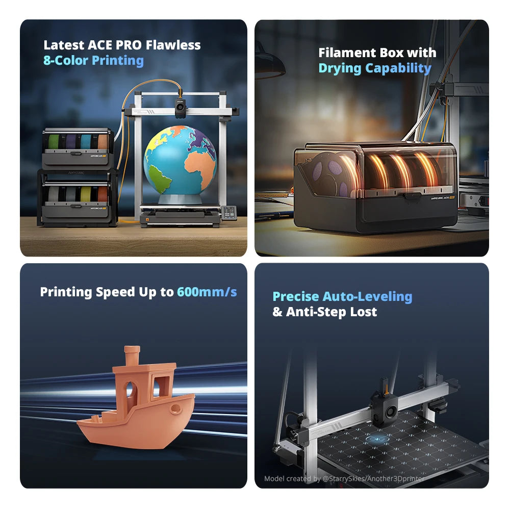 The ACE PRO supports standard 4-color printing;By pairing two ACE PRO units together , you can achieve brilliant 8-color printing, expanding possibilities for more vibrant and colorful creative projects.