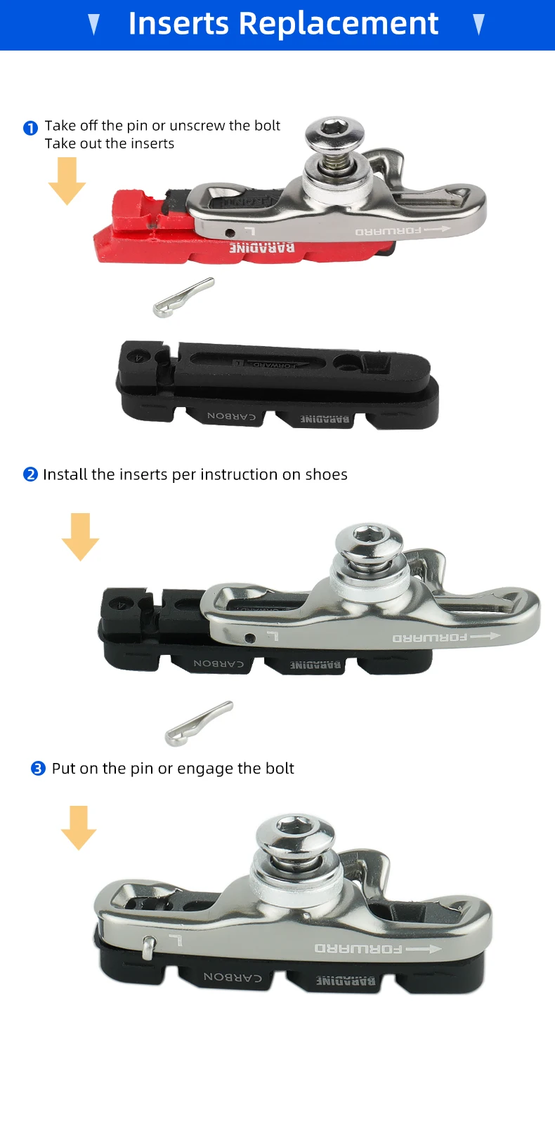 Baradine #453 Brake Pads for Carbon Wheel Rims Road Bike Caliper Braking Inserts Block for Carbon Wheelset Heat Dissipation Tech