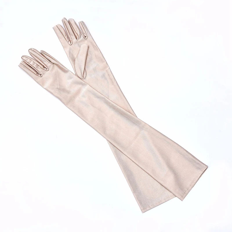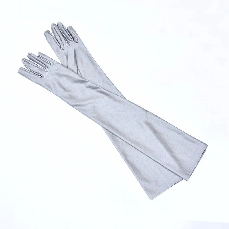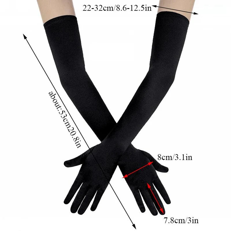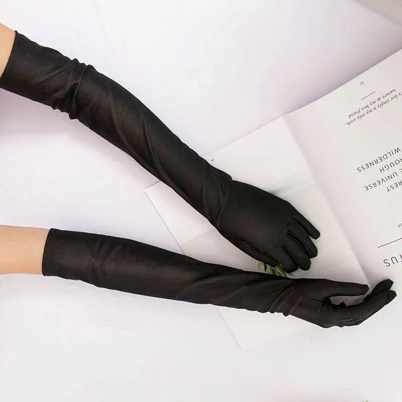 Classic Women Black White Red Evening Party Prom Gloves Opera Stretch Satin Long Mittens for Lady Driving Sun Protection Gloves