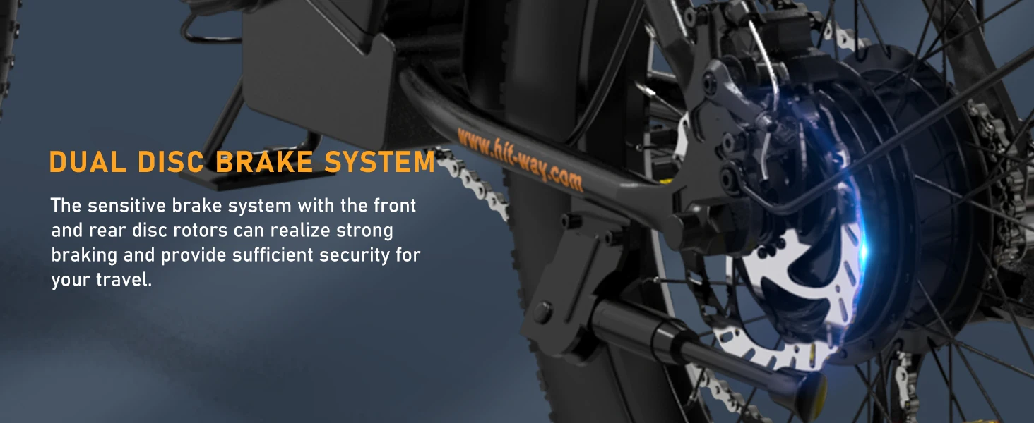 • Professional 20" Fat E-Bike: The adult electric bicycles employ 3.0 professional tires and dual suspension, which are wear-resistant and puncture-proof with good shock absorption. Whether in the city or in the mountains, HITWAY can provide you with a comfortable riding experience.