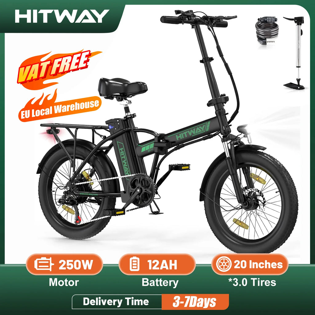HITWAY Electric Bike for Adults, 20" Fat Tire E Bike 250W Electric Bicycles, Folding Electric Bike, 36V/11.2Ah Battery 35-90KM