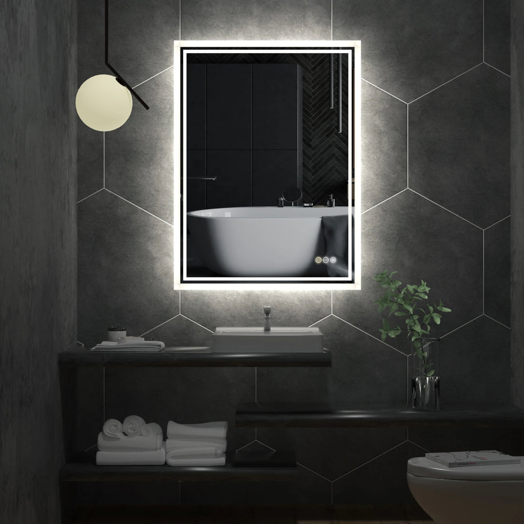 Rectangle Wall Hanging Led Backlit Light Up Bathroom Mirror for Makeup Shaving with Touch Switches 3 Lights Defog