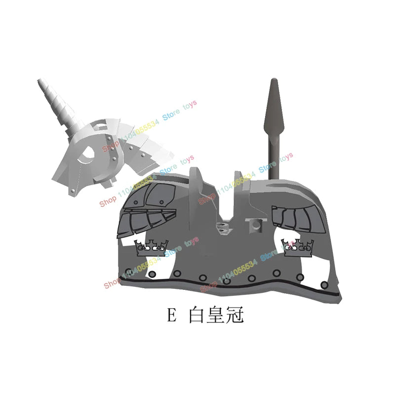 MOC Medieval Military Series Castle Roman Knight Horse Saddle Soldiers War Horses Building Block Accessories Kids Education Toy