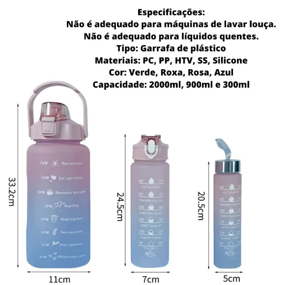 * IMMEDIATE SHIPPING * Kit 3 Motivational Squeeze Bottles is essential to stay well hydrated throughout the day, so, nothing better than practical bottles to always carry with you and ensure your hydration, goes with you to physical activities, work, college and many others.