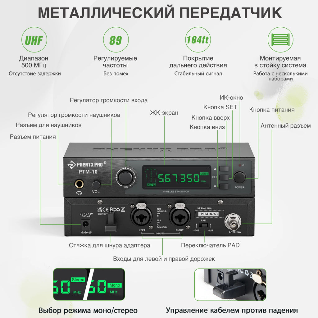 1. Stereo Separation: The PTM-10 offers over 93% stereo channel separation, providing a robust stereo field. Please note that the left/right channel audio separation is not 100%.
