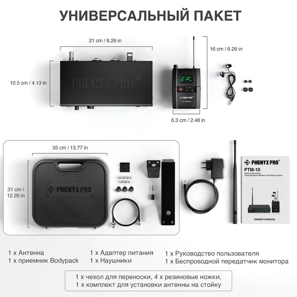 This quality stereo IEM system can works perfectly in various sound-monitoring events, both small and large venues, ideal for on stage performance, studio recording, exhibit, lecture, instruction, speech, etc. The package also includes metal racks that facilitate more professional use. Users can select the stereo mode for both the transmitter and receiver to enjoy stereo performance of the system.