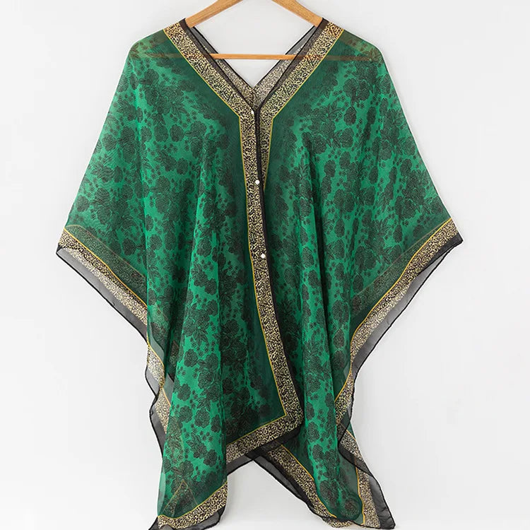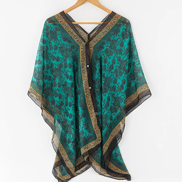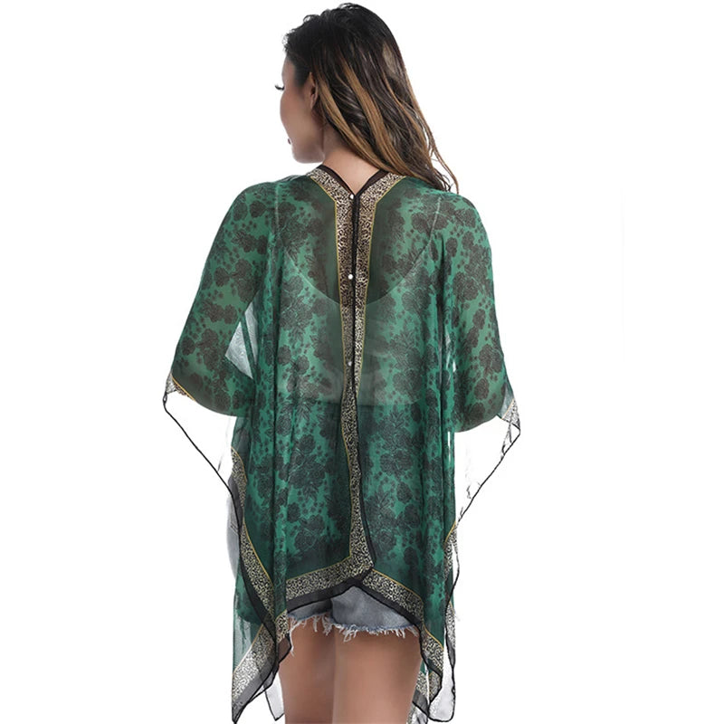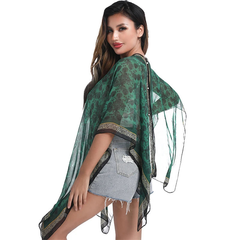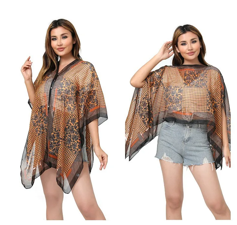 Women Sun Protection Shawl for Cycling Lady Summer Chiffon T-shirt Holiday Leopard Scarf Bikini Blouse Breathable Beach Poncho