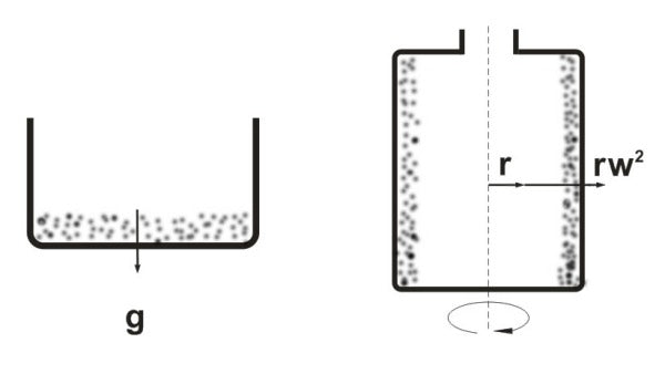 Abb.1. Prinzipielle Analogie zwischen Sedimentation und Zentrifugation