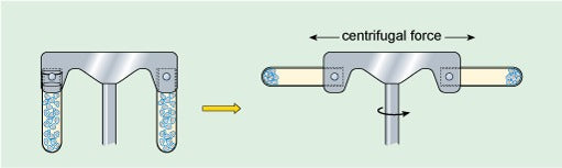 Die Zentrifugalkräfte wirken auf alle Teilchen. Die Partikel mit dem spezifisch höheren Gewicht werden am schnellsten und effektivsten nach außen geschleudert. Sie setzen sich dann am Gefäßrand ab.