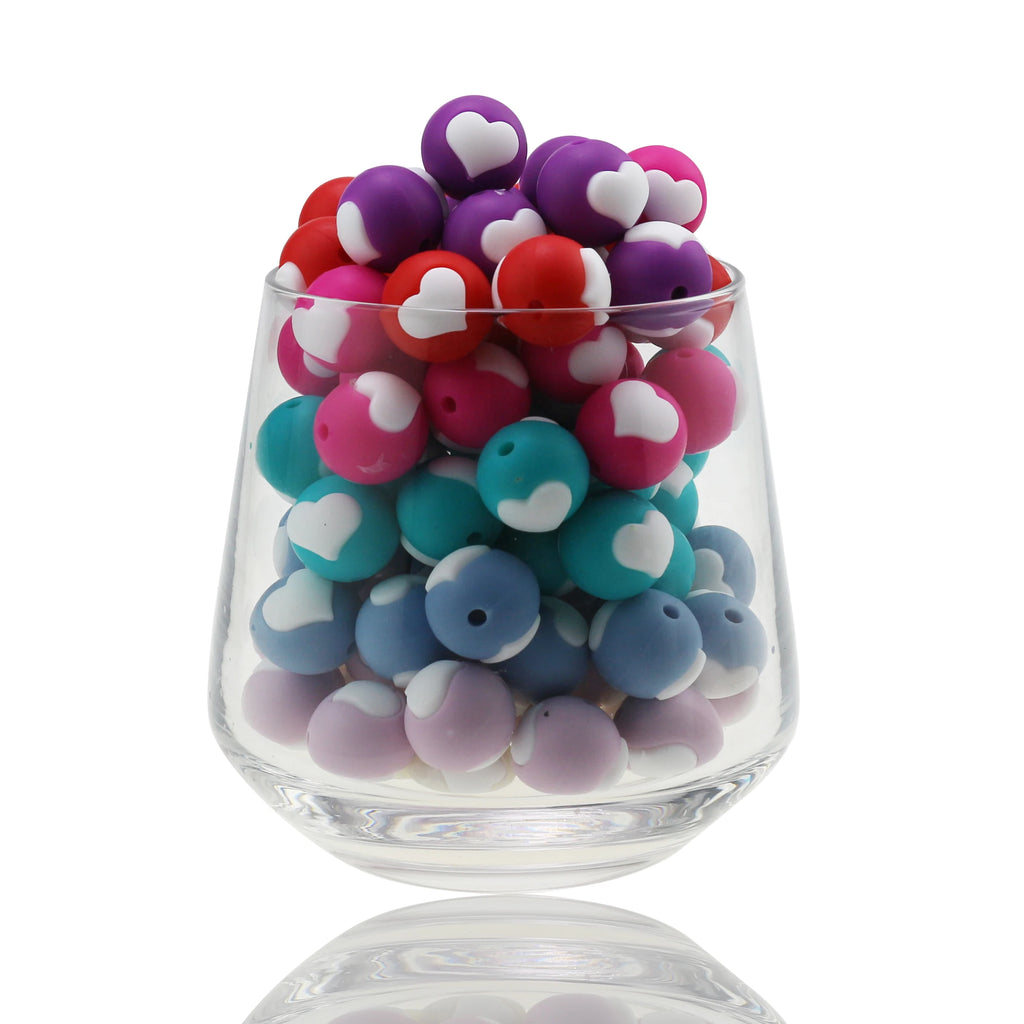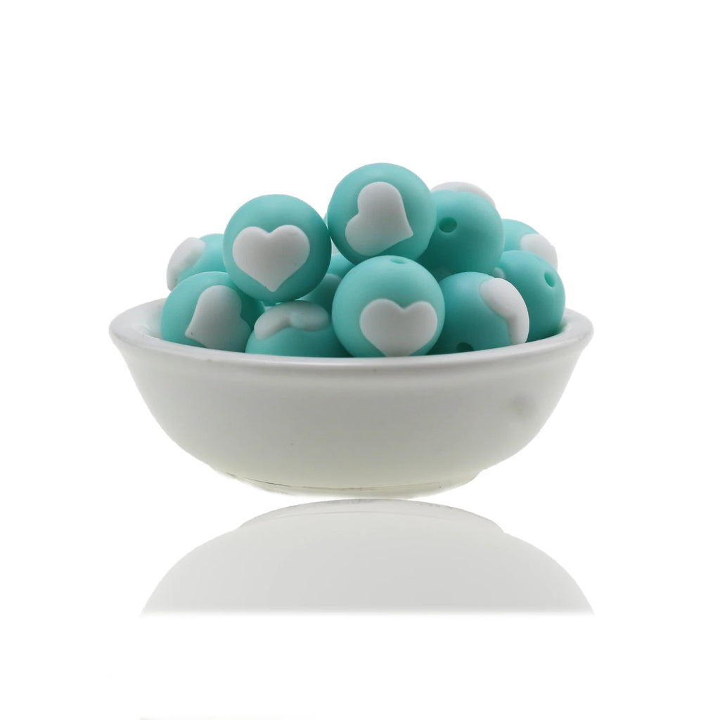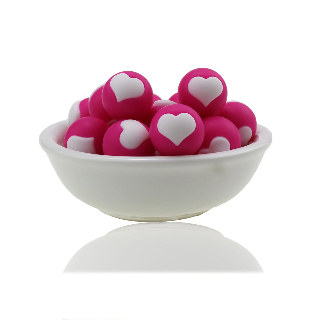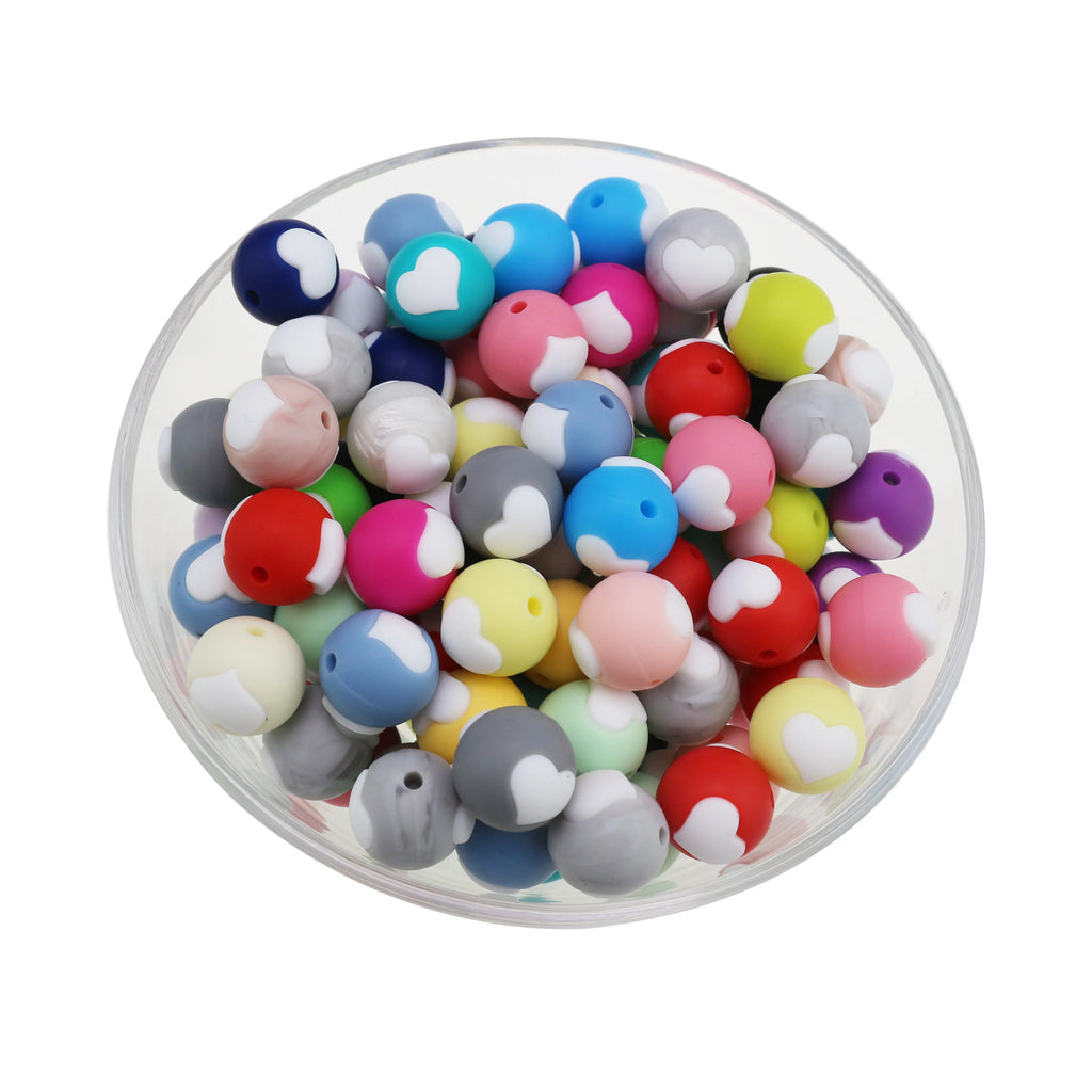 10pc/Lot Valentines Day Silicone Beads Focal Heart Round Marking DIY Necklace Baby Pacifier Chain Beads For Making Jewelry