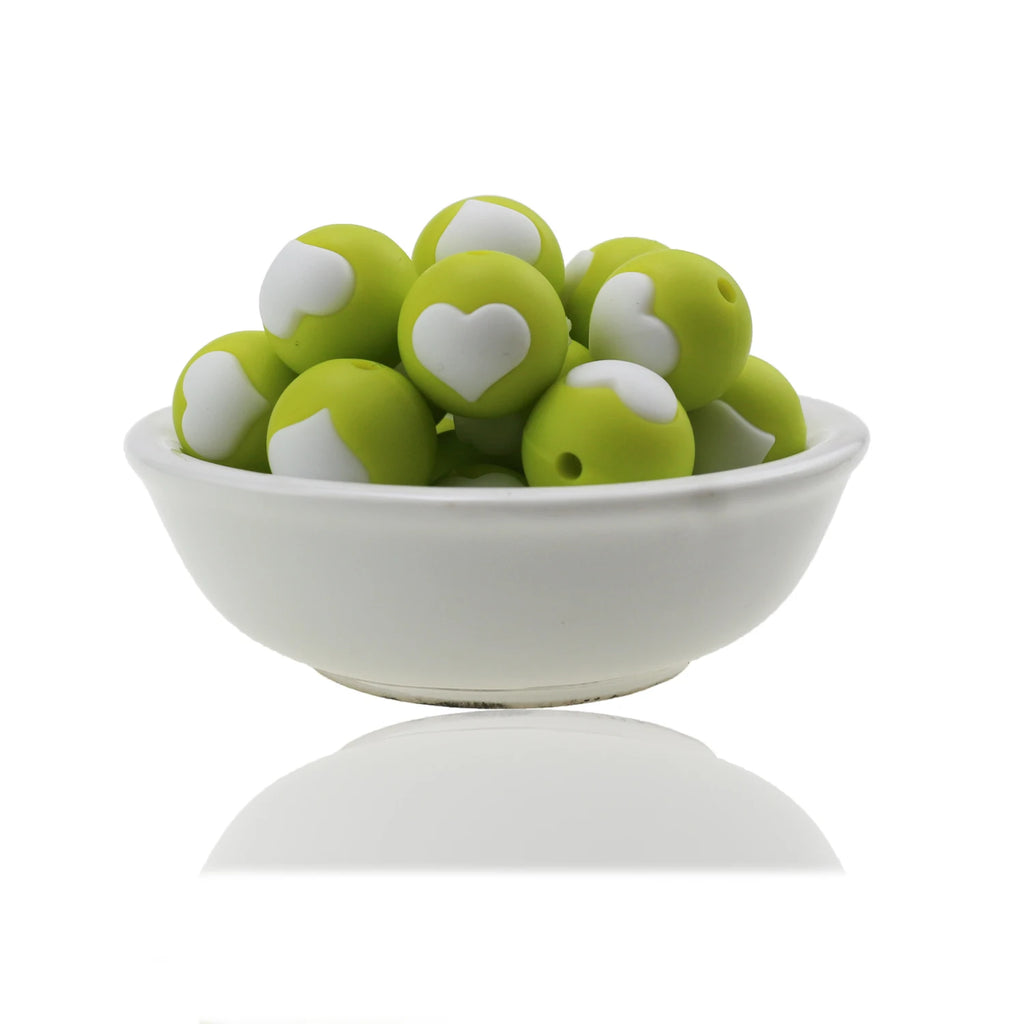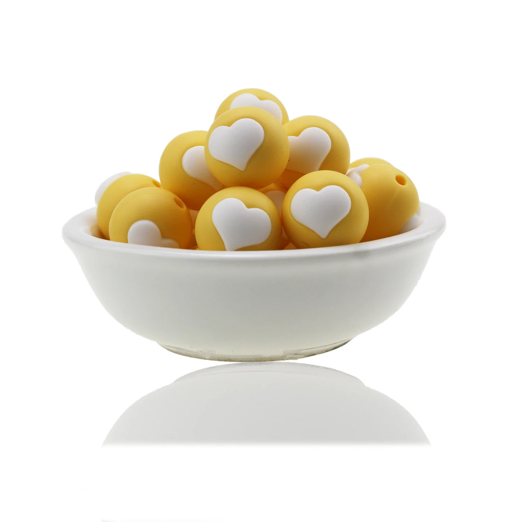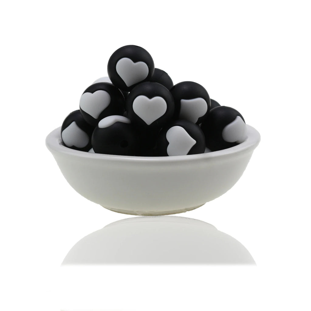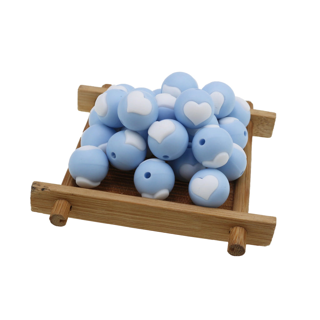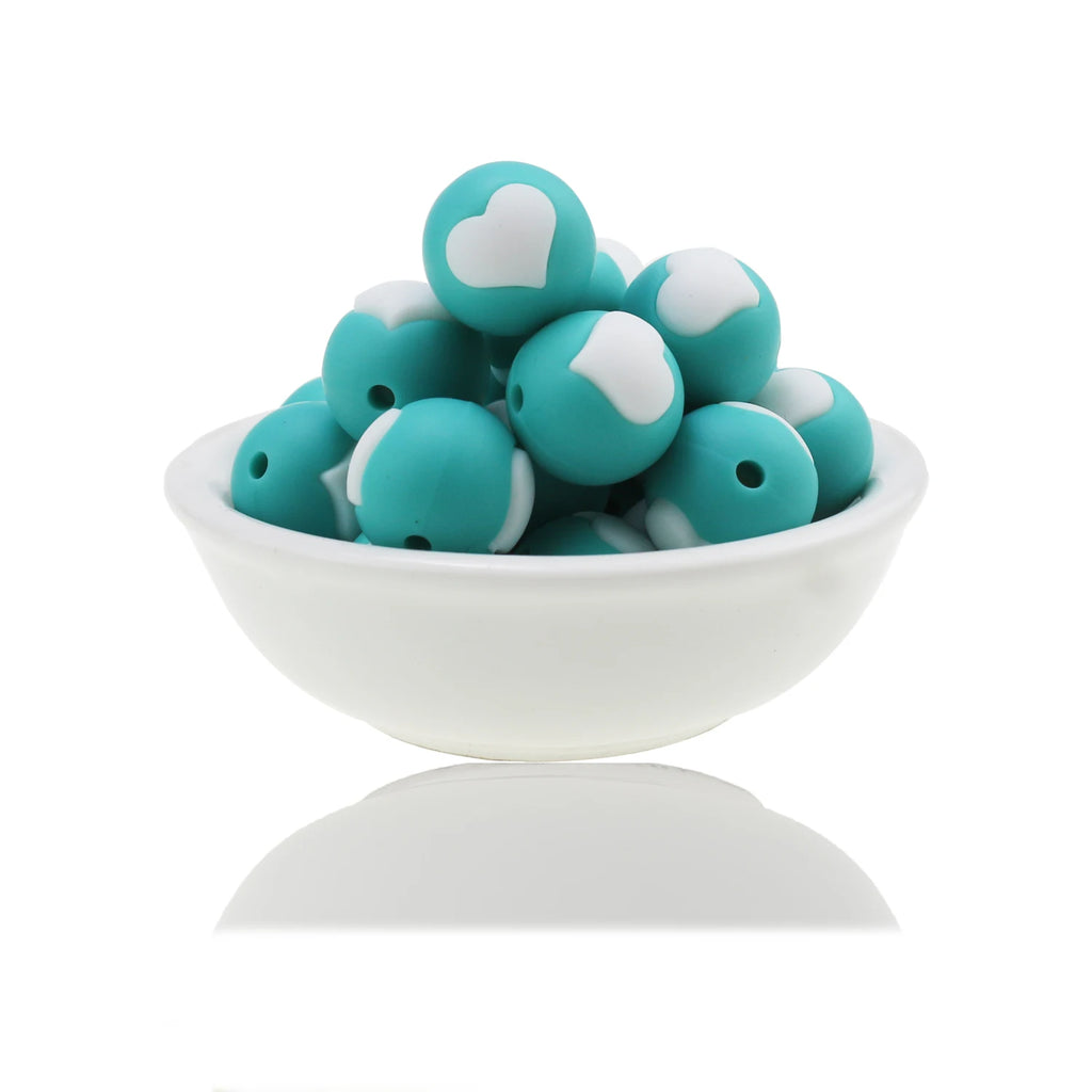 10pc/Lot Valentines Day Silicone Beads Focal Heart Round Marking DIY Necklace Baby Pacifier Chain Beads For Making Jewelry