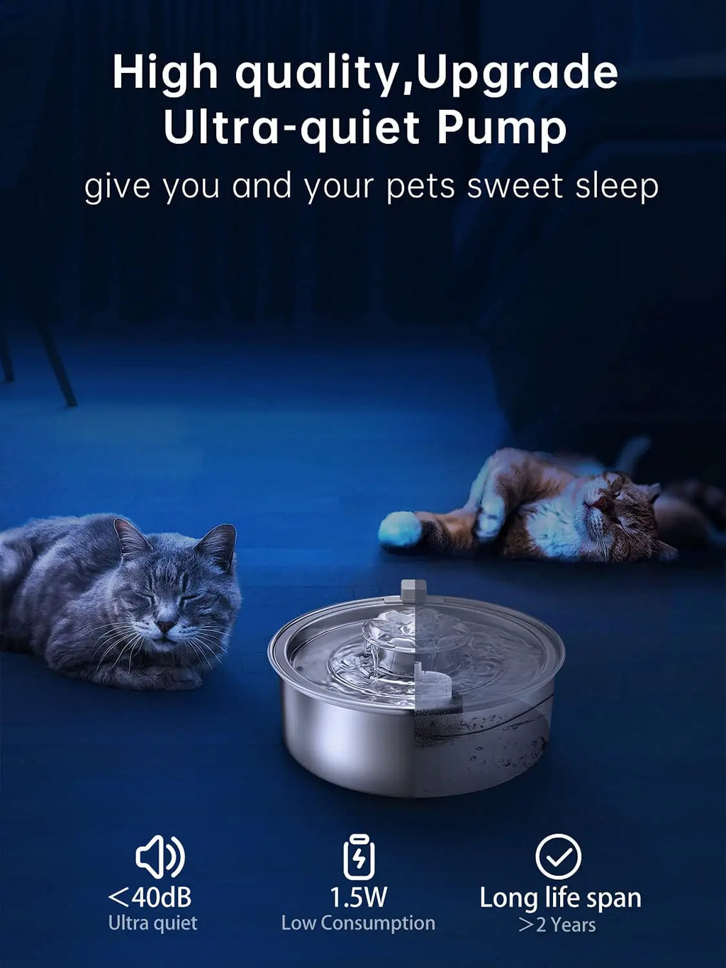 ◆[Quiet]The pet fountain uses an upgraded version of the ultra-quiet water pump, there will be no noisy mechanical sound disturbing you during normal operation, give you a quiet and comfortable environment.