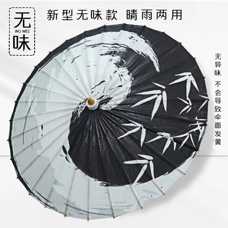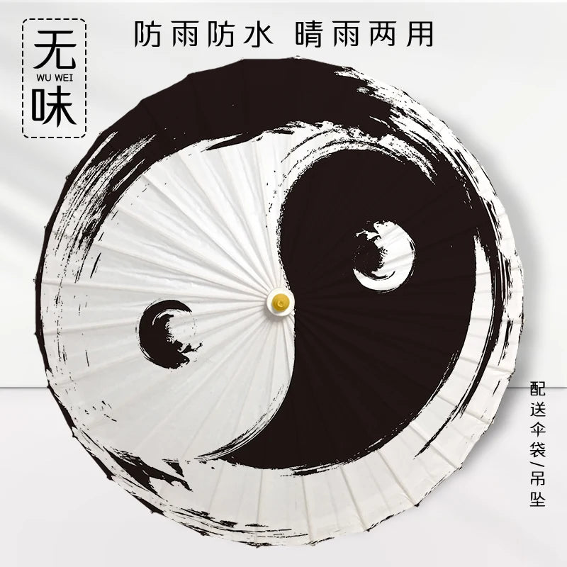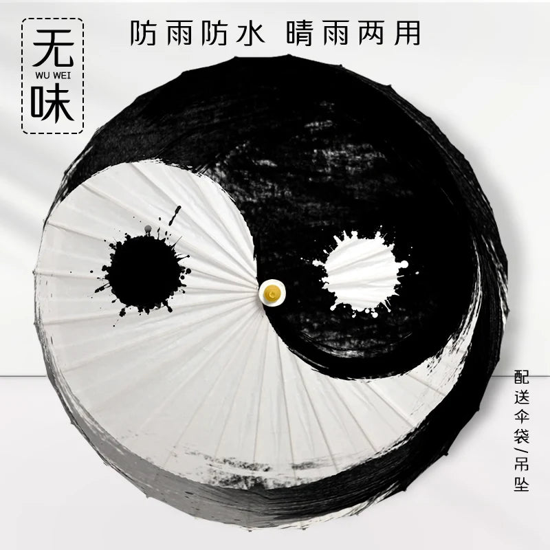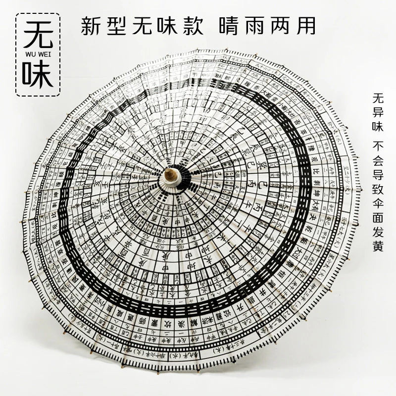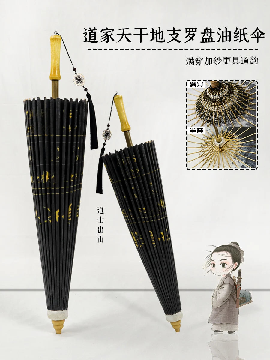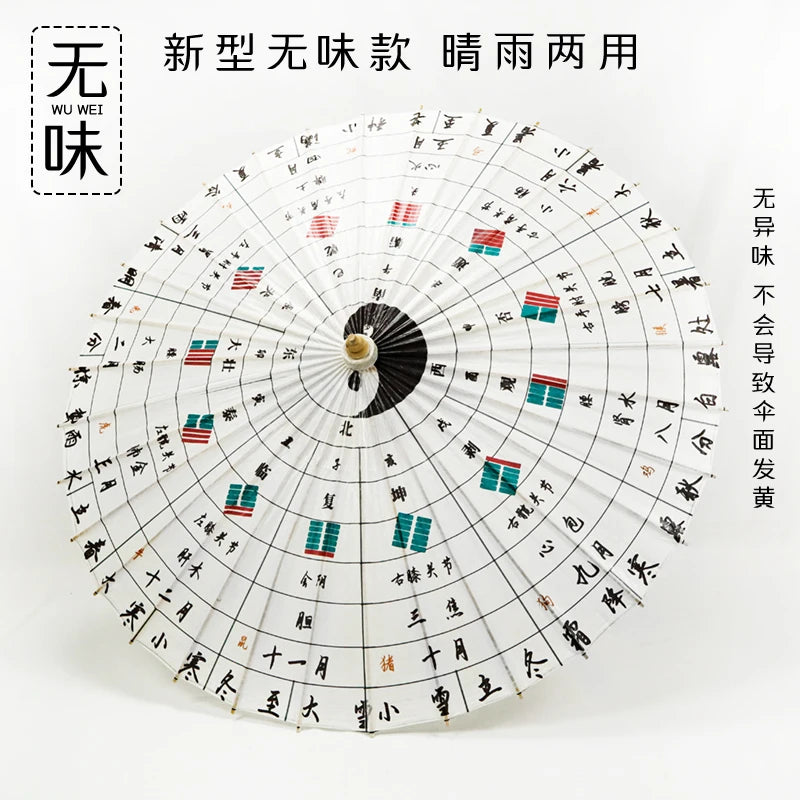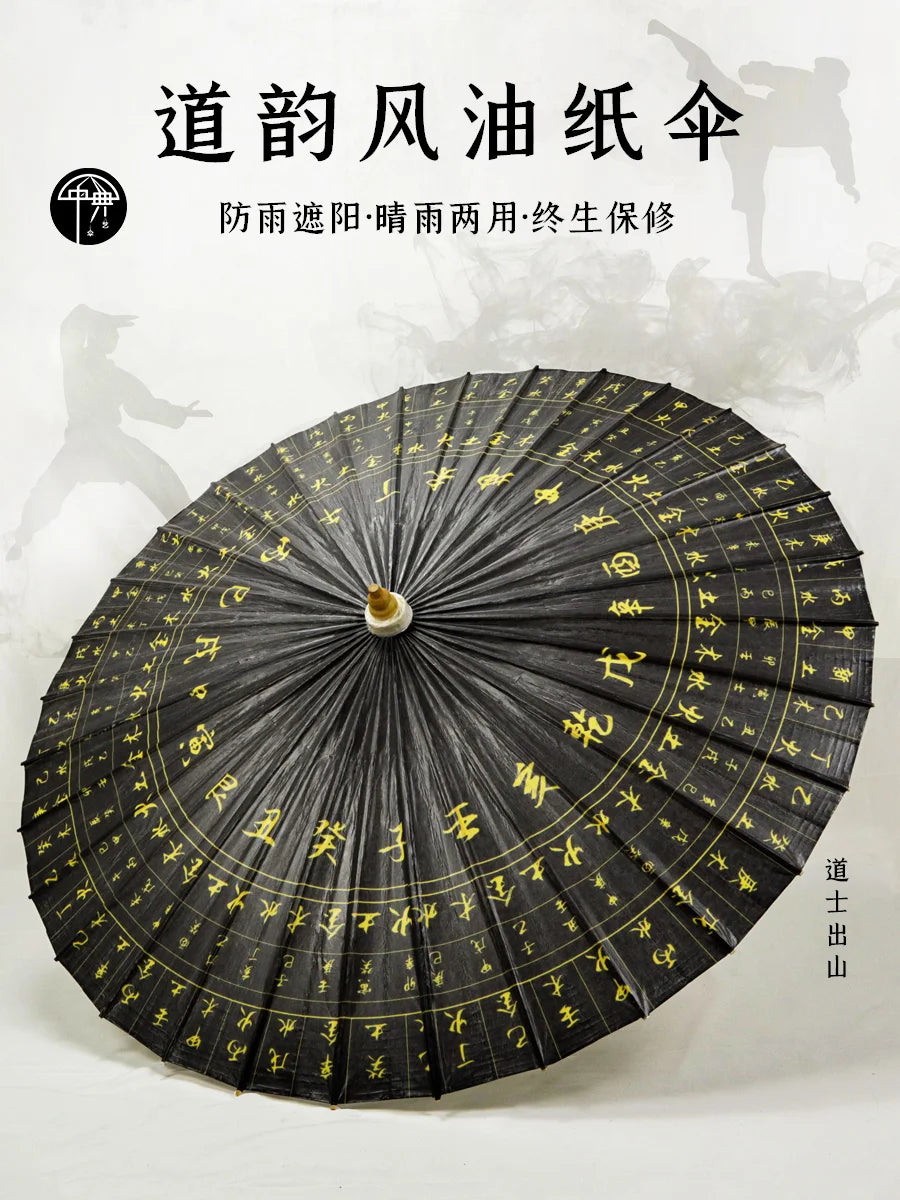 84cm Taoist Oil Paper Car Waterproof Beach Umbrella Shade Fan For Rain Sun Protection Traditional Handmade Film Umbrella Parasol