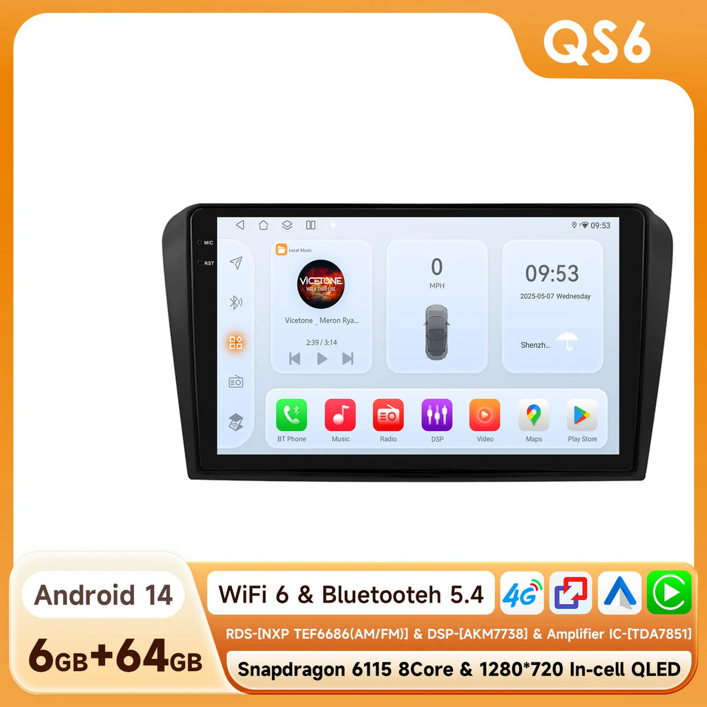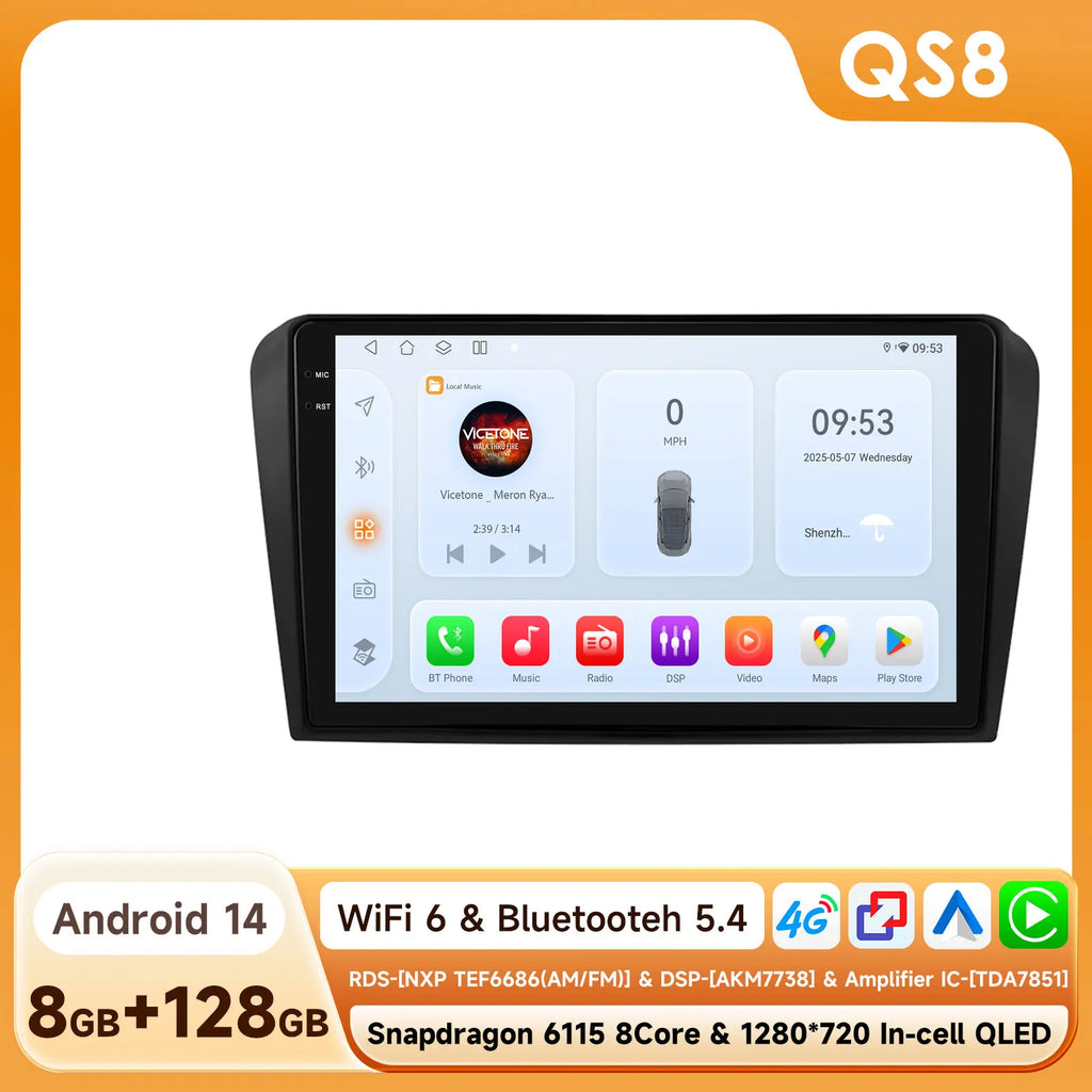 9" Hizpo 2Din CarPlay Android Auto Car Radio for Mazda 3 2004 - 2009 Snapdragon 6115 Headunit GPS Navi 4G BT RDS DSP SWC 360°CAM
