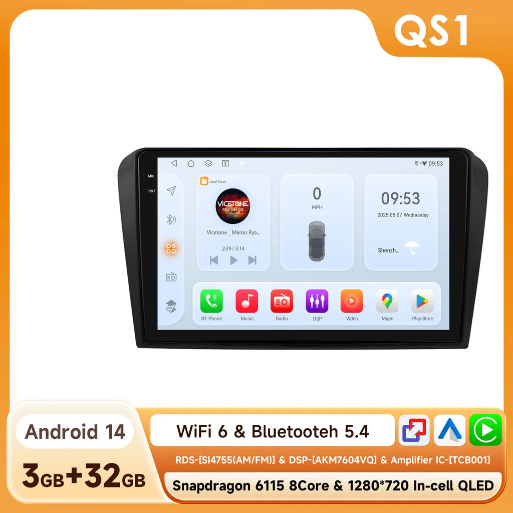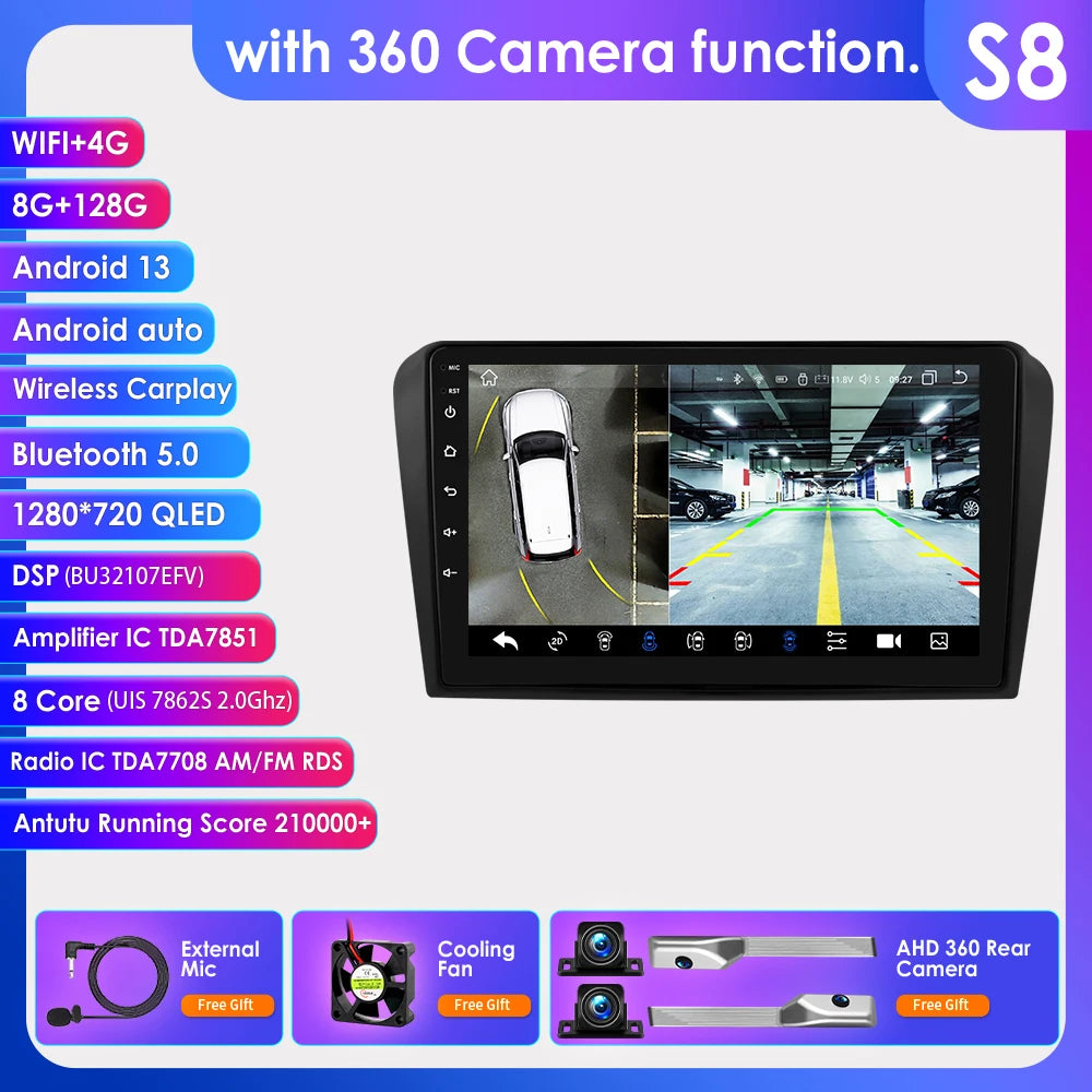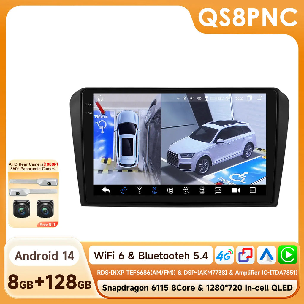 Snapdragon 6115 Headunit GPS Navi 4G BT RDS DSP SWC 360°CAM