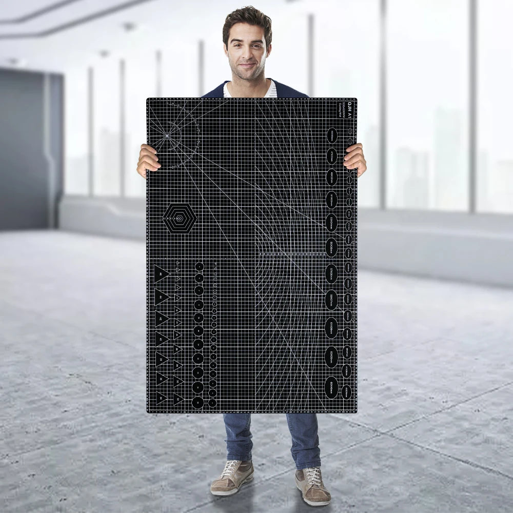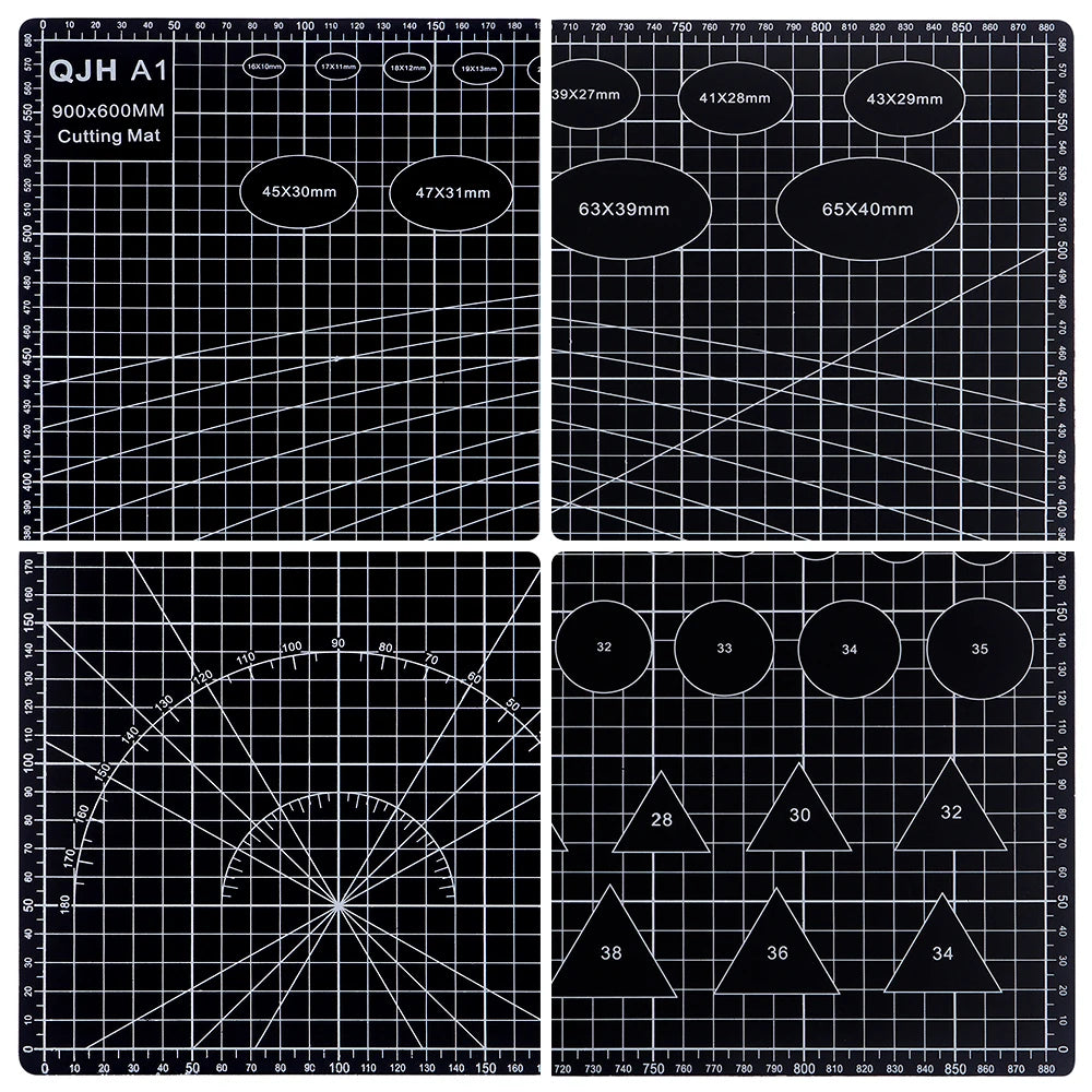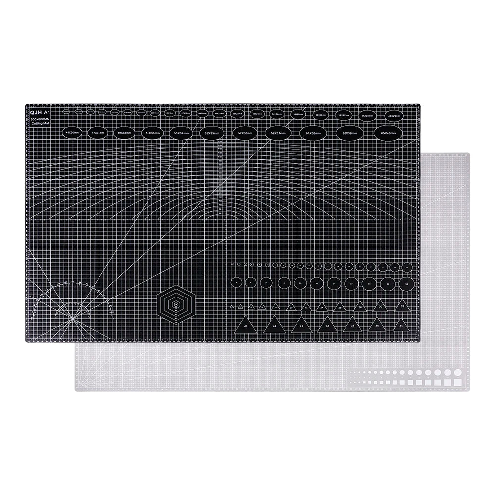 QJH A1 Double-Sided Self-healing PVC Cutting Pad,Multifunctional DIY Desktop Protection Pad (35.43 x 23.62 "),Perfect For Leather Cutting, Carving, Punching, Paper Crafts, Clay Crafts (Black+gray)
