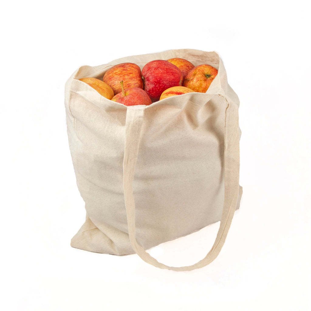 100% cotton fabric bag recyclable, washable, reusable, biodegradable.