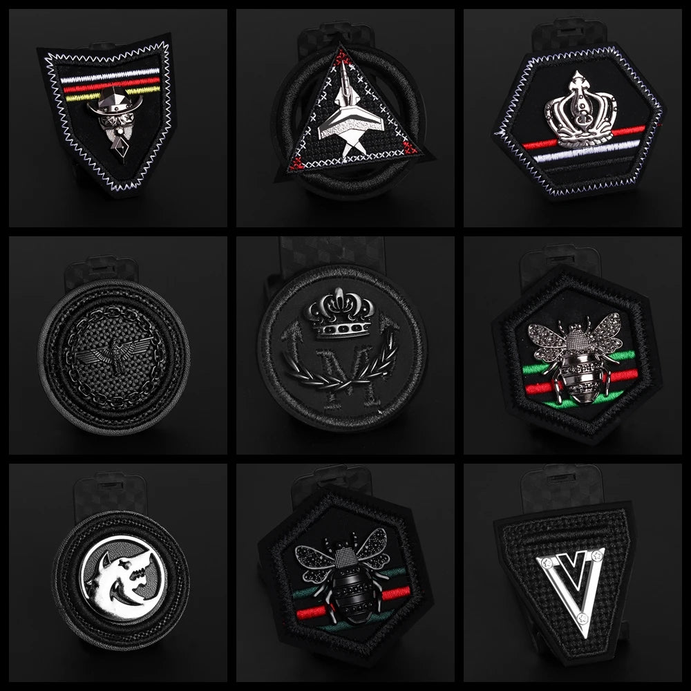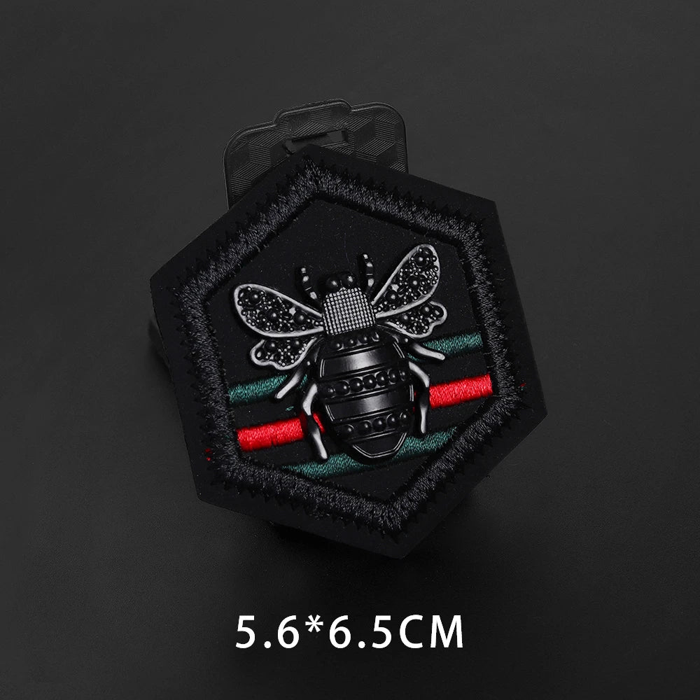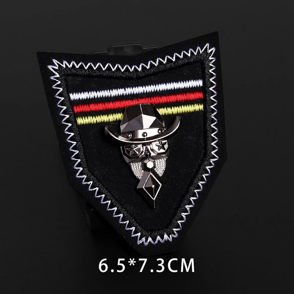 Black Handmade 3D Bee Wolf Embroidered Patches An Crown Number Metal Leather Sew on Applique for Jacket Jean Backpack Badges