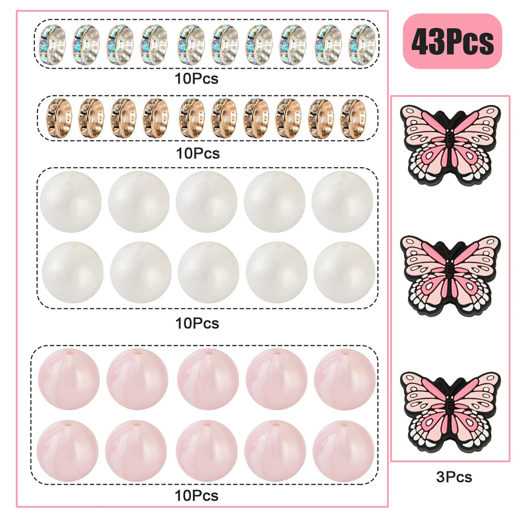 Complete DIY Jewelry Set: This silicone beads kit includes 3pcs butterfly silicone beads, 20pcs round silicone beads in pink and white color, 10pcs/color, 20pcs rondelle rhinestone beads in 2 colors, 10pcs/color. It provides a wide variety of beads and accessories to meet all your jewelry making needs.