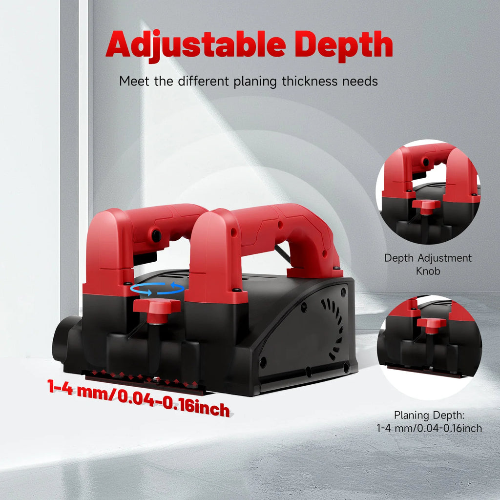 Adjustable Depth: You just need to twist the knob in the middle of the two handles to adjust the depth from 0.04-0.16 in freely, to meet the needs of different thicknesses of wall planing, which is simple and convenient.