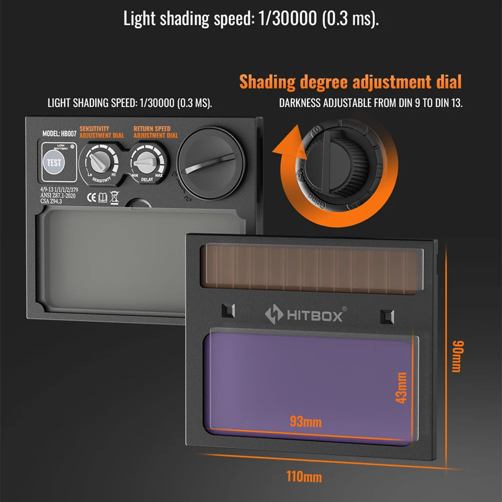 HITBOX Welding Helmet Auto Darkening Welding Mask For TIG MIG ARC Welder Machine Large View True Color DIN9-13 93*43MM Vision