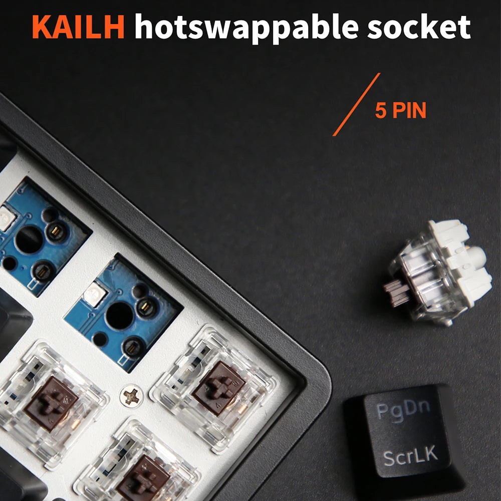 3.Hot-swappable- Hot-swap PCB allows you to replace 3 pins/5 pins switches freely without soldering issue. Enjoy the fun of making your own unique keyboard.