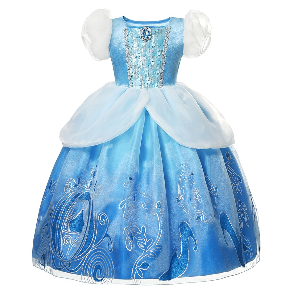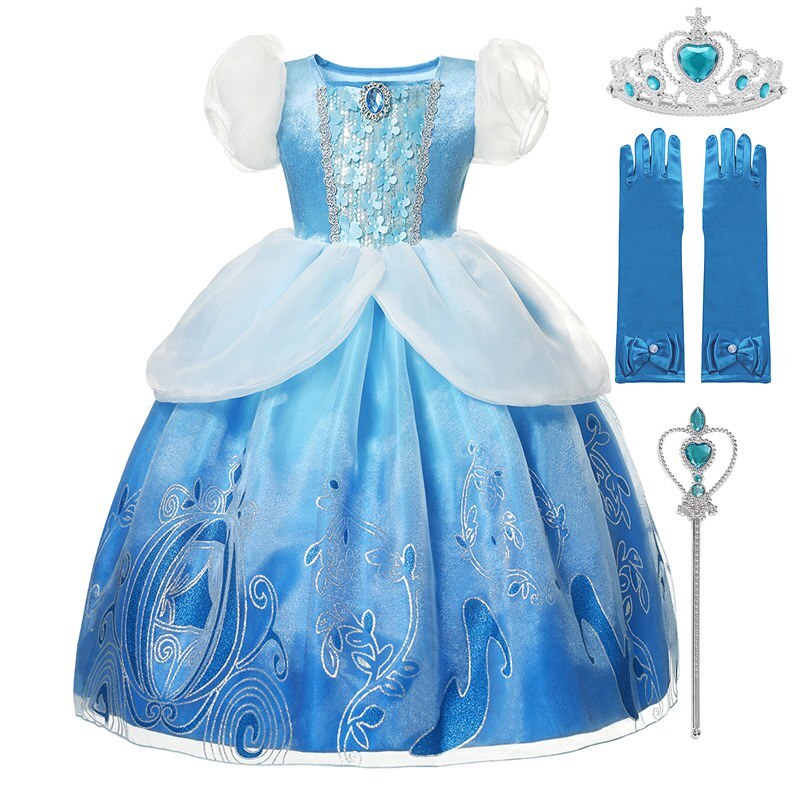 VOGUEON Mädchen Aschenputtel Prinzessin Halloween Party Kostüm Kurzarm Blau Fancy Ballkleid Kinder Fancy Geburtstag Kleidung Kittel