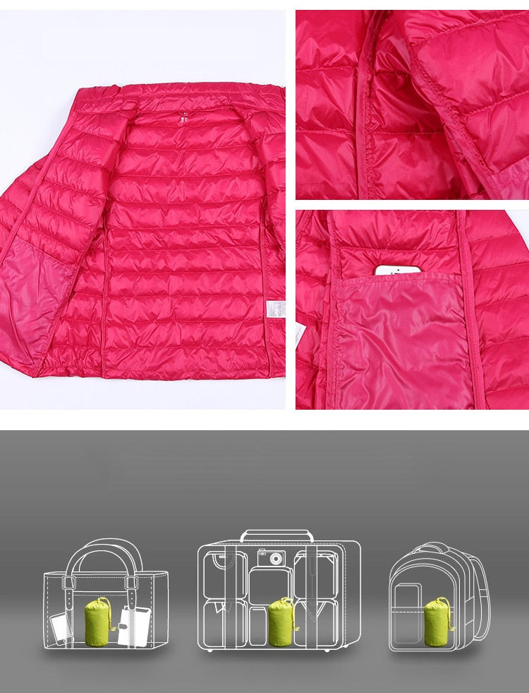 Winter Frauen Ultraleichte Dünne Daunenjacke Weiße Ente Daunenjacken Volle Hülse Warmer Mantel Parka Weibliche Tragbare Outwear