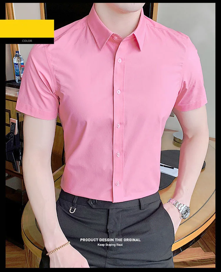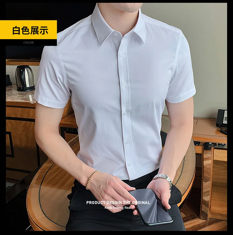 40kg-125kg Verano Nuevas camisas Casual Moda Algodón Manga corta Slim Fit Hombres Social Blusa Botón abajo Camisa de vestir blanca 6XL 8XL