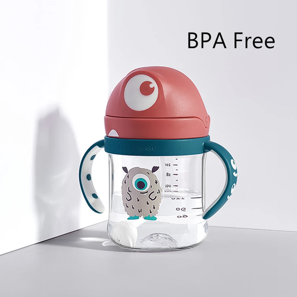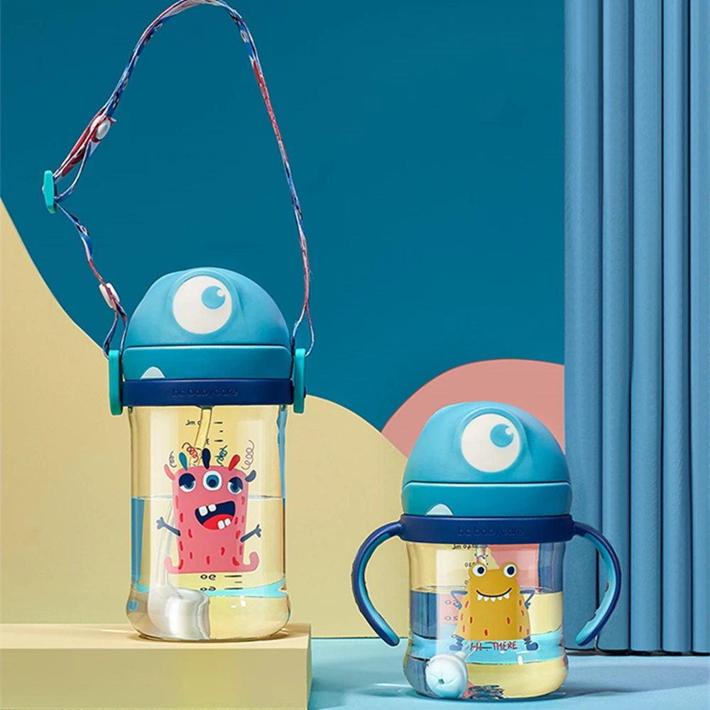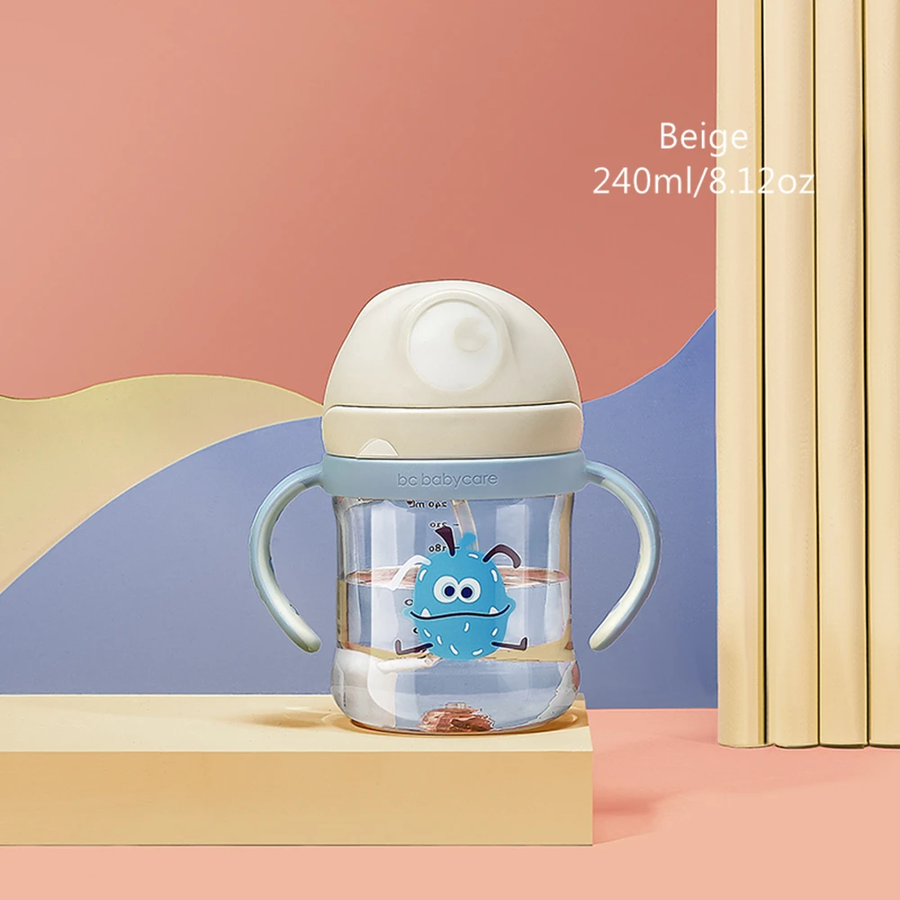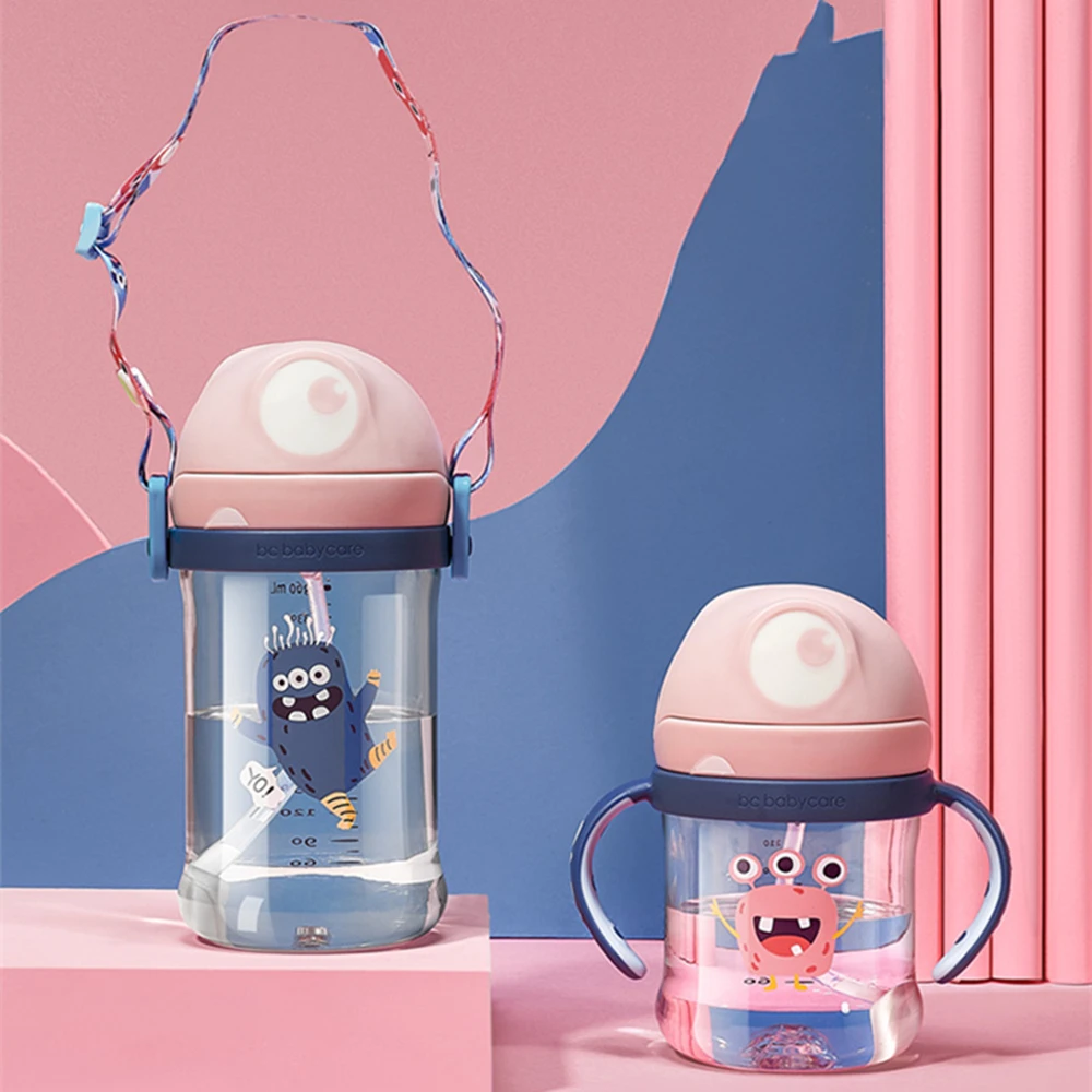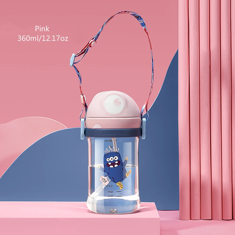 BC Babycare 240/360ml Baby Sippy Cup Kids Gravity Ball Agua Forma linda Botella a prueba de asfixia Asa para beber Taza con correa para el hombro