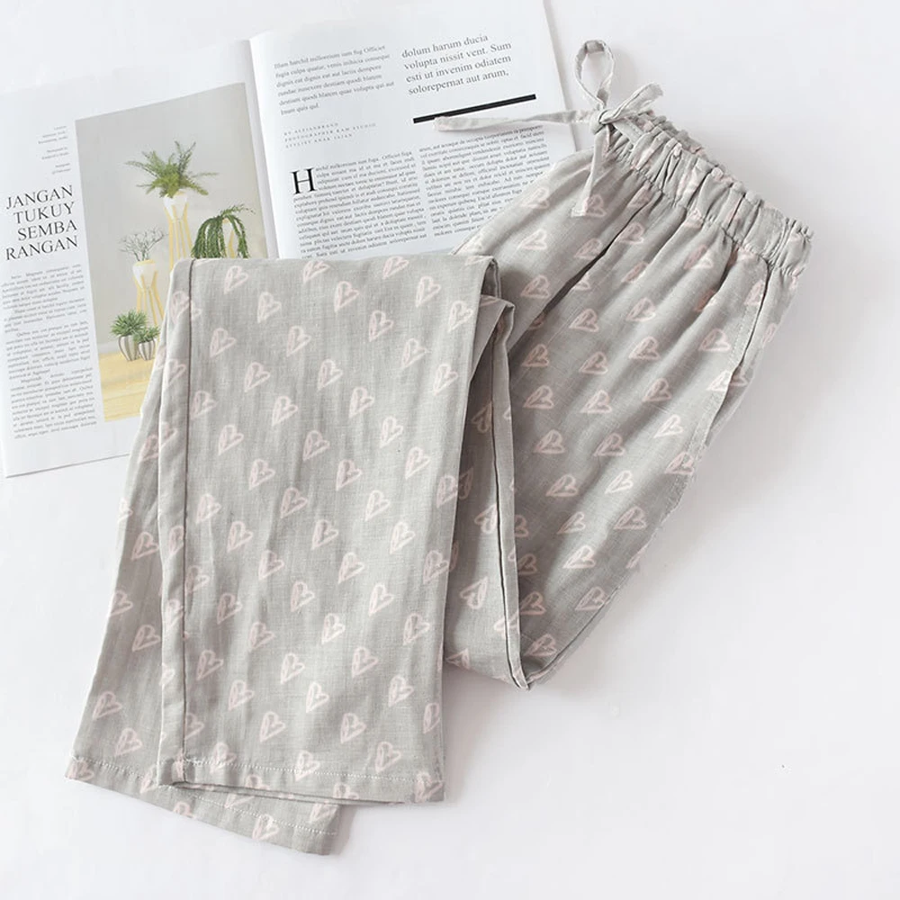 Cotton Pajamas Pants Couples Home Pants Women Sleepwear Cute Night Pants Loungewear Print Sleep Bottoms Loose Pants Night gown