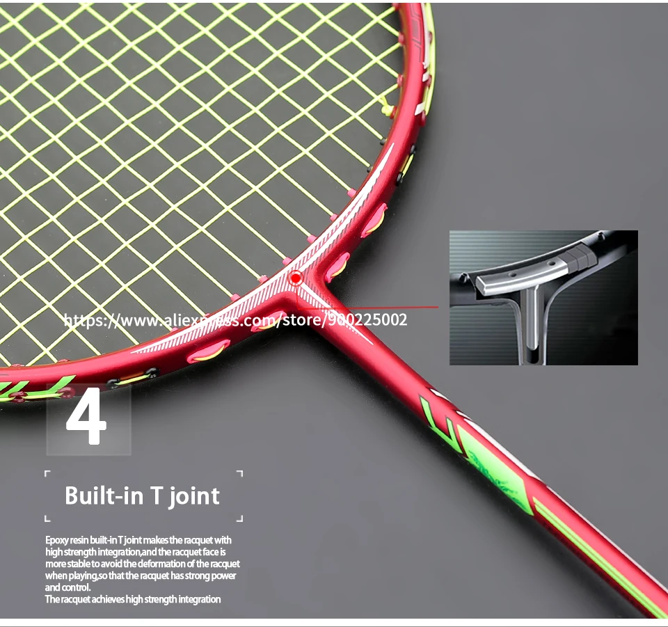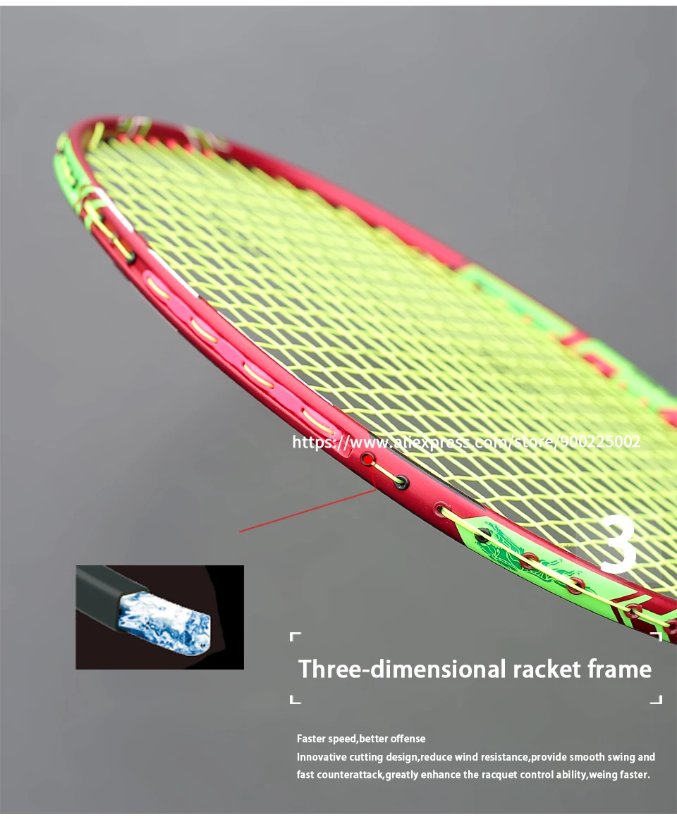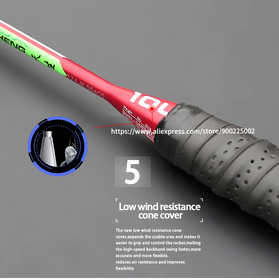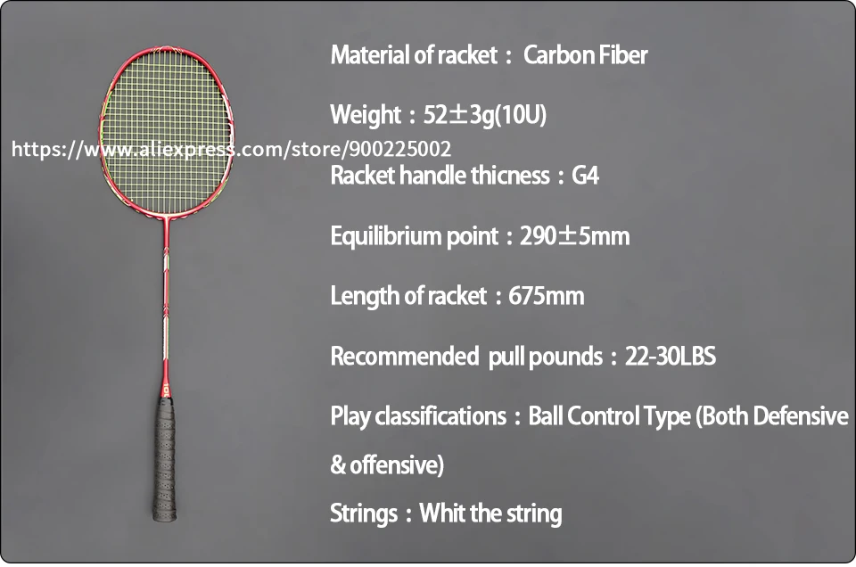 Peso: 10U Peso neto de solo 52-54,5 g sin la cuerda, el overgrip y la película de plástico, cualquiera puede controlar la raqueta sin esfuerzo;