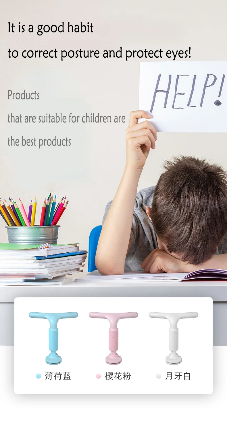 Corrector de postura sentado para niños, soporte para sentarse antimiopía ajustable, juego de papelería para lectura y escritura, herramientas de marcapáginas