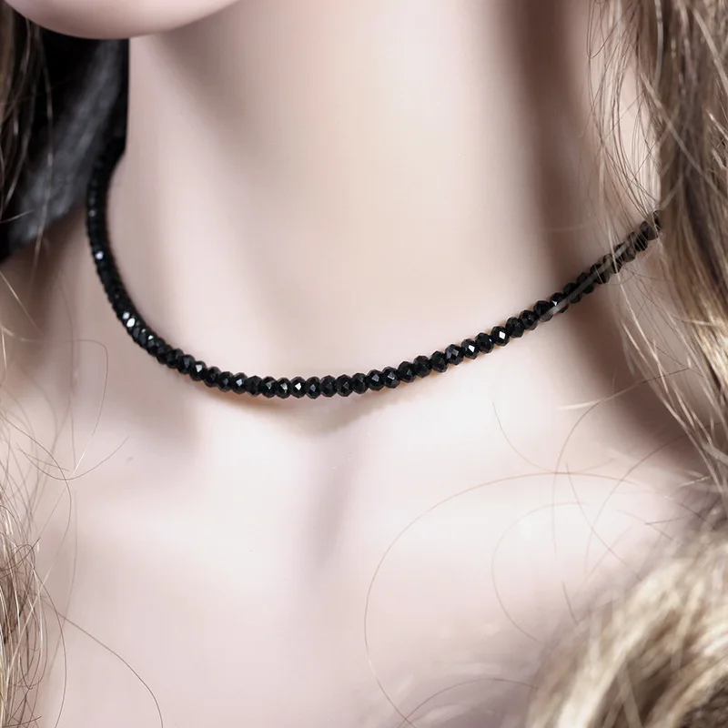 Zorun Natural Stone Tourmaline/Spinel/Fluorite Necklace Jewelry 2MM with 925 Sterling Silver Accessories for Women