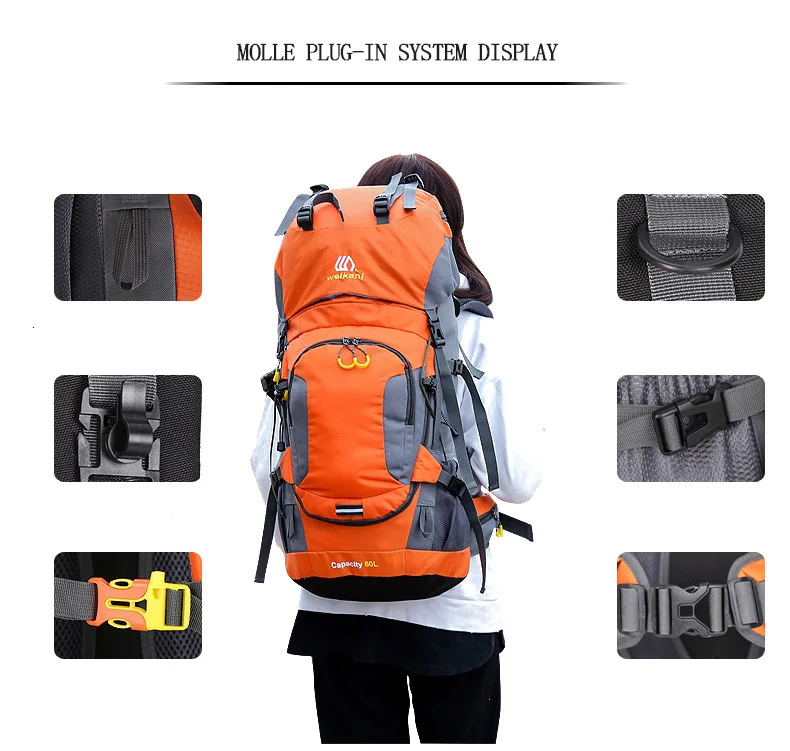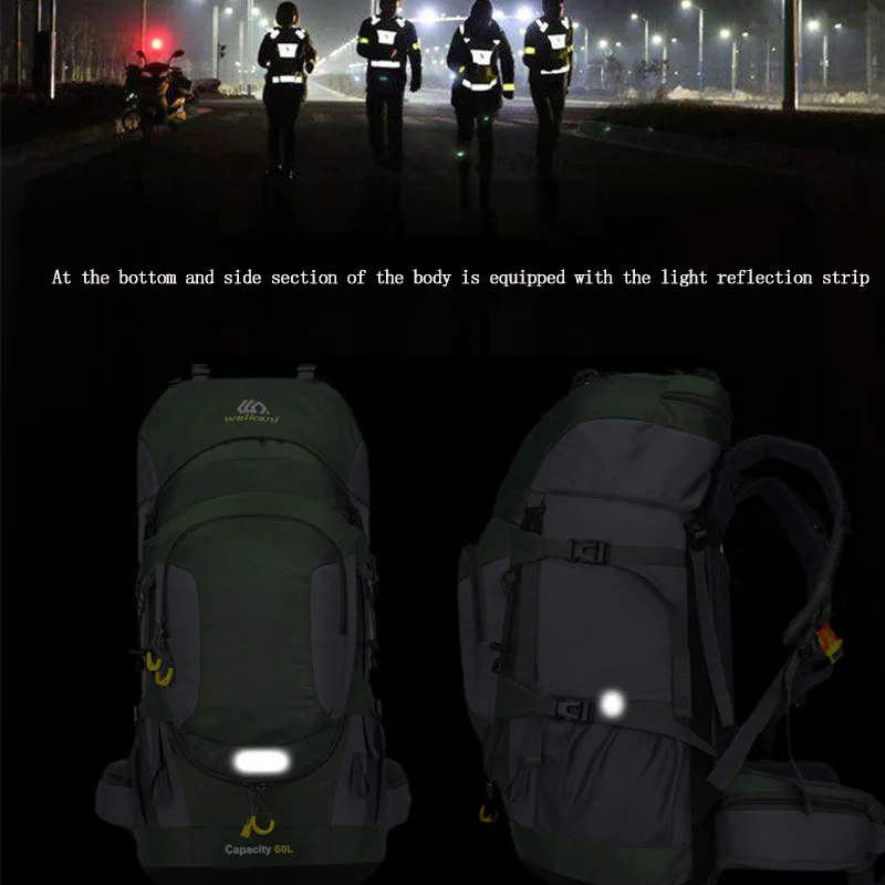 Mochila al aire libre bolsa de camping 50l/60l hombres con reflejo de luz mochila de viaje impermeable hombre camping senderismo bolsas mochila deportes