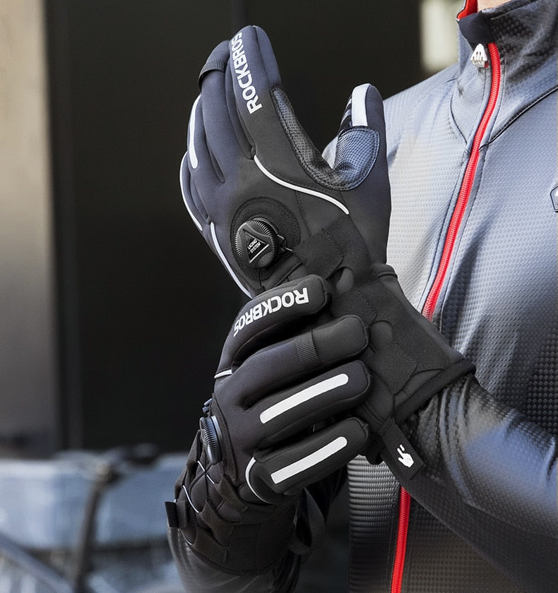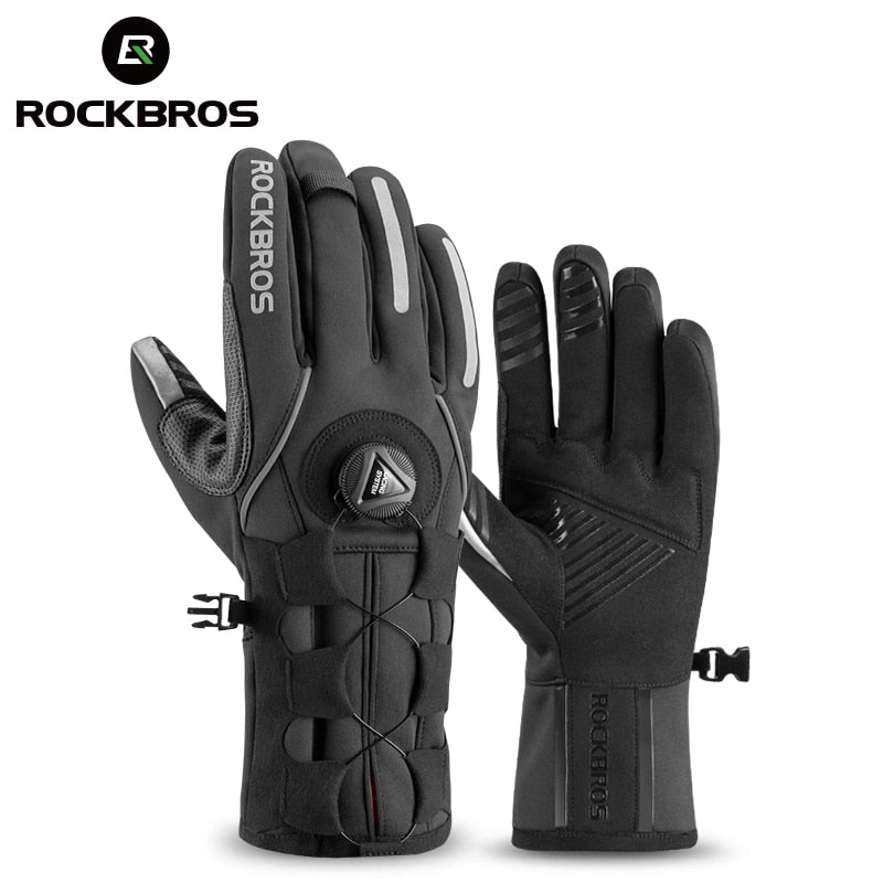 Guantes de ciclismo ajustables ROCKBROS, guantes de bicicleta de montaña cálidos con pantalla táctil reflectante, guantes impermeables para exteriores para motocicleta y bicicleta
