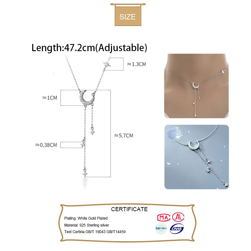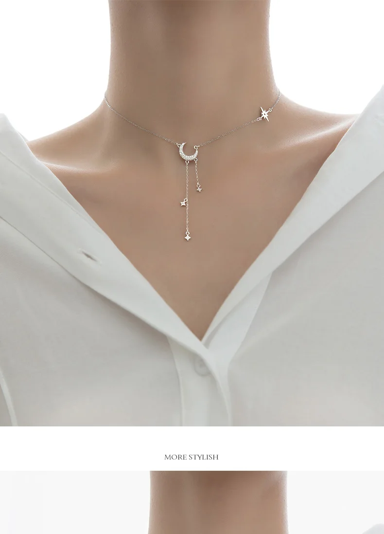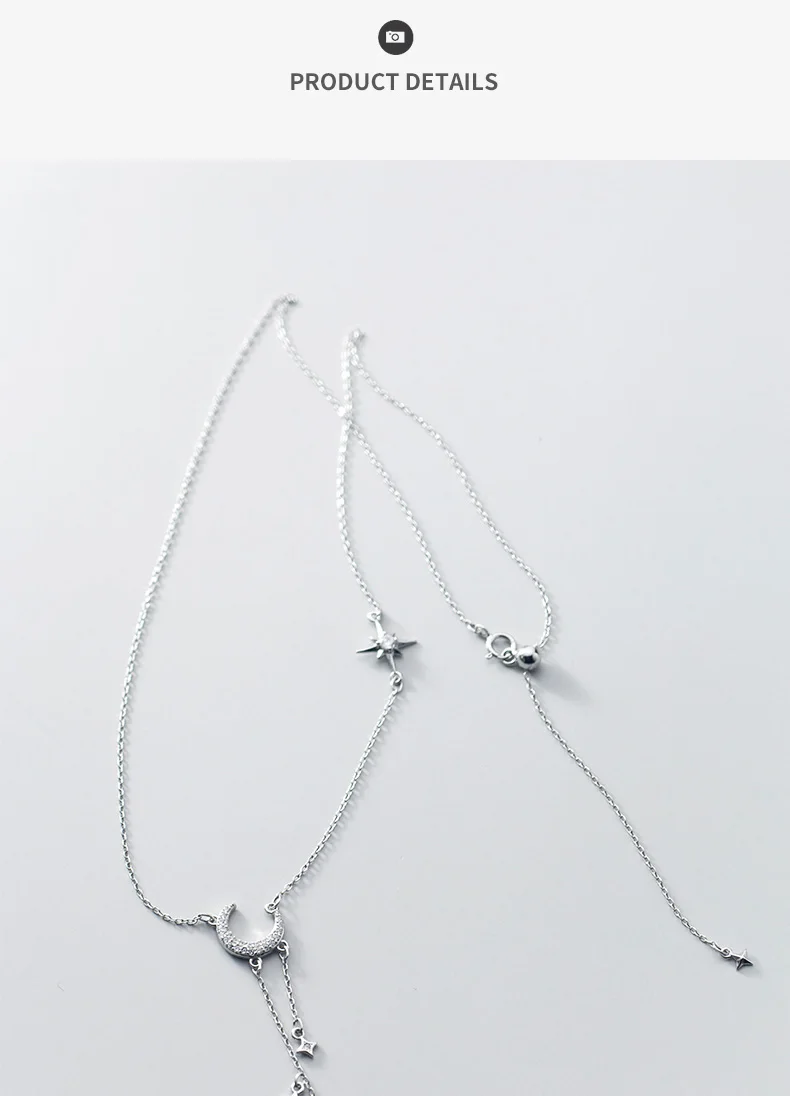 TrustDavis, collar corto con colgante de estrella y borla de Luna de Plata de Ley 925 auténtica para mujer, collar de boda S925, joyería DA1027
