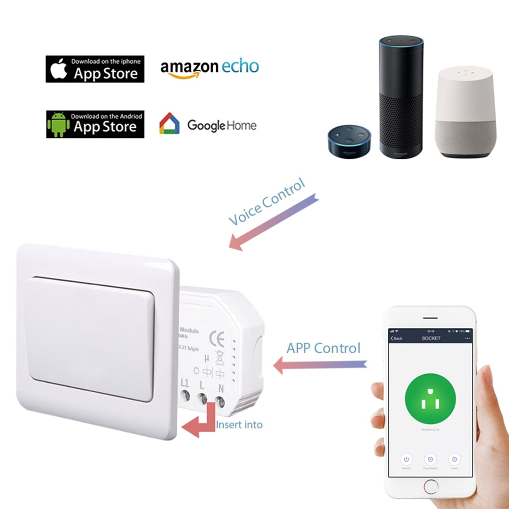 Main Features: The Wi-Fi switch module designed to transform your traditional switch into Wi-Fi Smart switch that allows the connected device to be controlled via a smart phone as well as a traditional switch. Mini design : Intelligent switch module is suitable for Electronic product with power less than 2300W, ( Ceiling light, lamp , table lamp, garden light. Fan , Air conditioner, coffee machine etc... ) Main functions: Smartphone Remote control , Time switch , Voice control ...