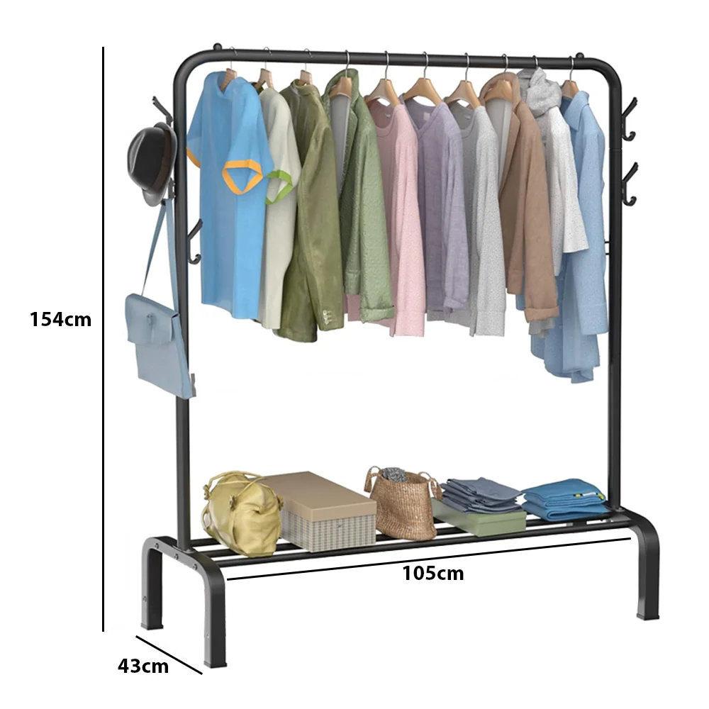 154*43*105cm Clothes Rack Shoes Rack Home Clothes Storage Rack Single Hanging Portable Bedroom Freestanding Clothing Rack