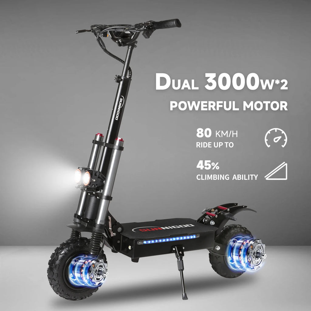 6000W Powerful Electric Scooter 60V 38Ah Max Speed 80km/h 80km Range 11'' Tire Dual Shock Absorbing Folding EScooter for Adults