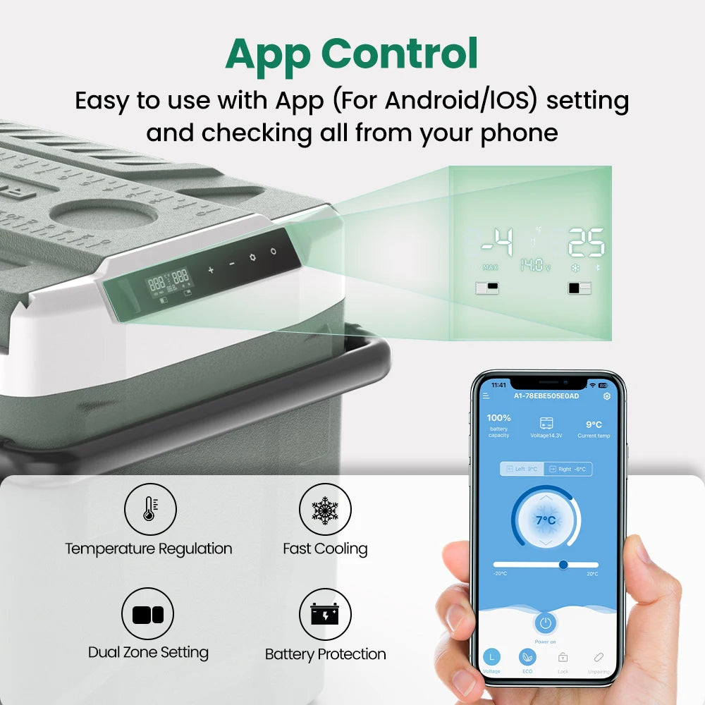 Alpicool EZGW 40L 50L 60L Car Refrigerator 12V Compressor Fridge Freezer Dual Zone with Wheel Portable Cooler for Camping BBQ