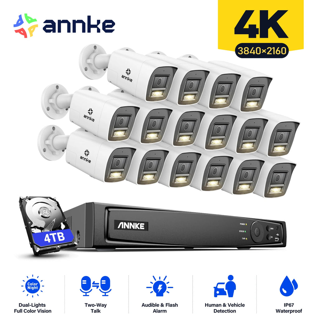 ANNKE 8CH 4K Ultra HD POE Network Video Security System 8MP H.265+ IP Camera Support Two Way Audio human & Vehicle Detection 4MM