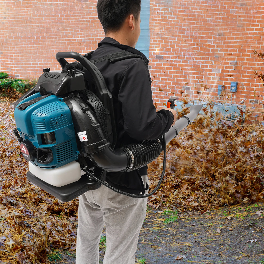 Use this backpack leaf blower to meet your debris-cleaning needs! With a high-performance 75.6cc 4-stroke engine, clearing leaves and yard debris is effortless. Its design takes comfort into consideration and comes with adjustable and soft straps that evenly distribute weight, making it easy to use throughout the day. Comfortable shock absorbers help absorb and reduce vibrations, increasing operator comfort.