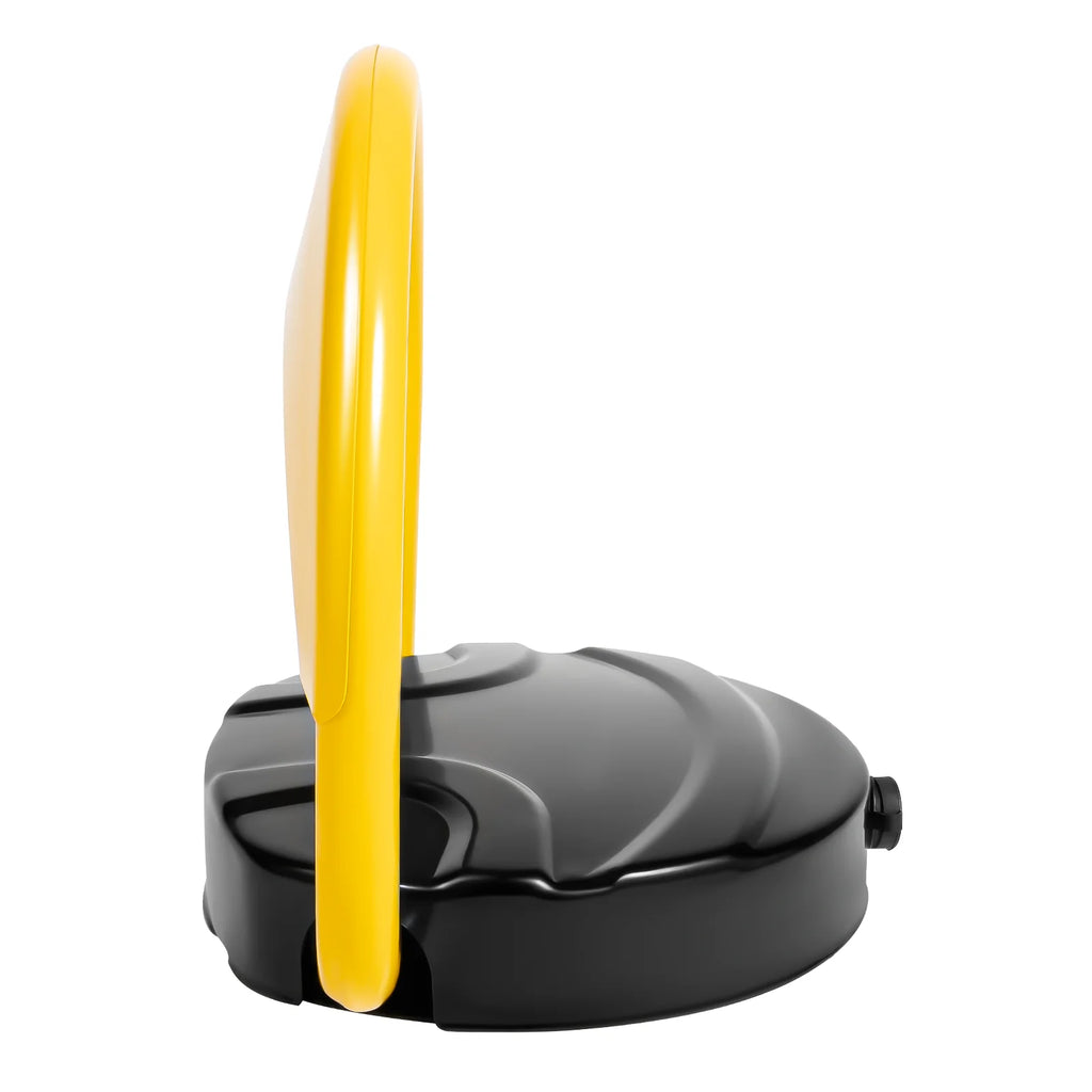 Eye-catching Appearance: The prominent bright yellow and the red no-parking sign make our remote parking lock very eye-catching; The equipped reflective strip allows pedestrians and vehicles to notice it even at night or in dimly lit garages.
