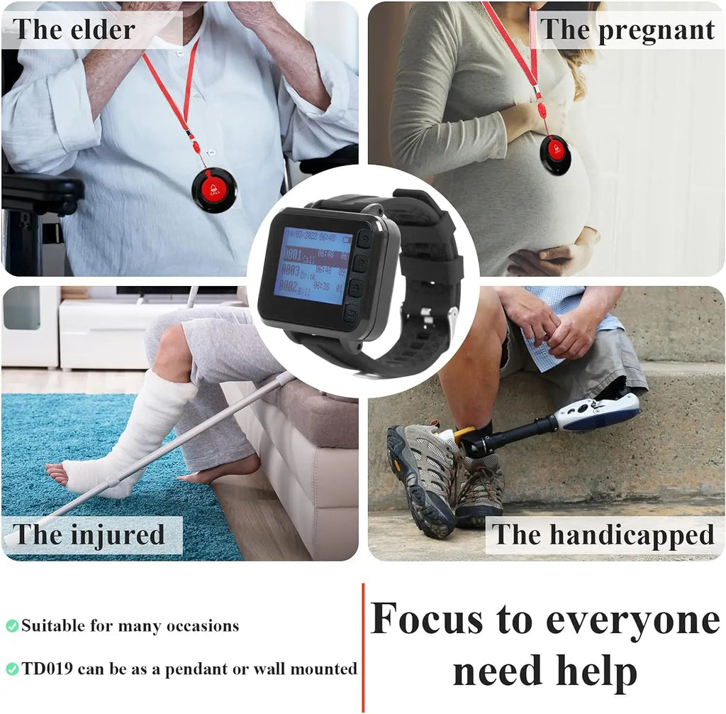• ✨【WATCH RECEIVER】 Easy to set up and easy to use. When you need help, just press the call button without shouting. The wearable pager will vibrate or sound an alarm.