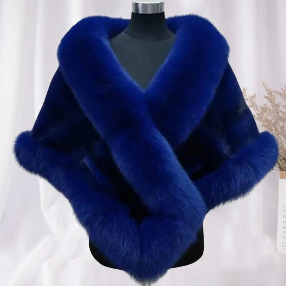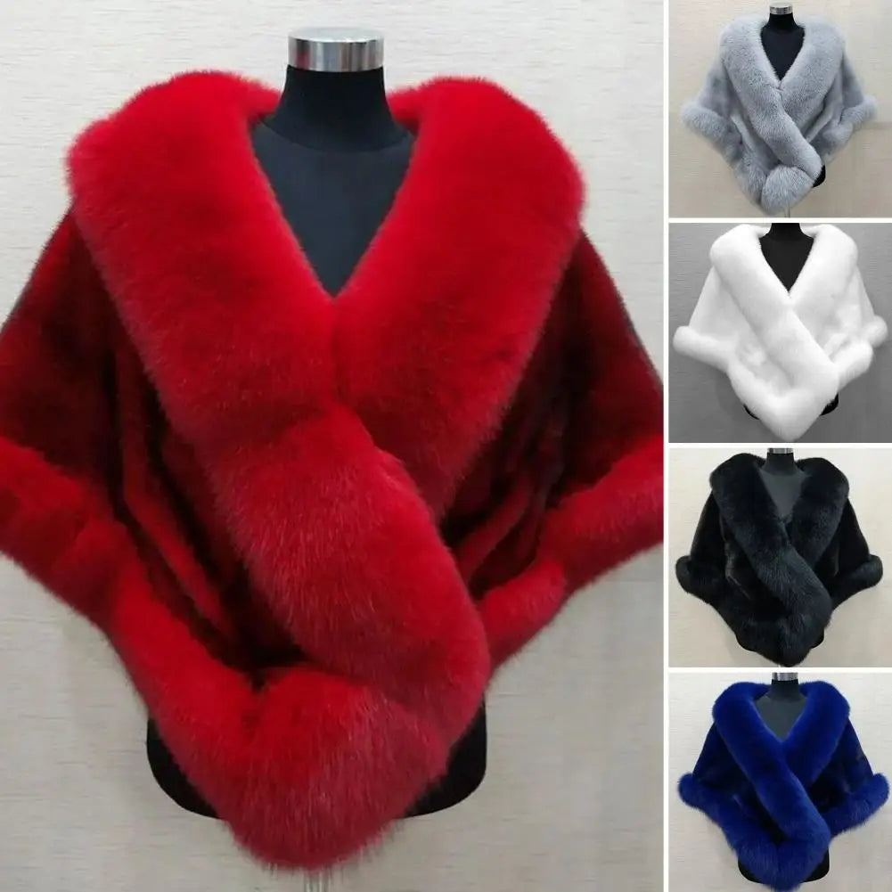 Thickened Warm Solid Color Fluffy Cape Coat Women Winter Faux Mink Fox Fur Shawl Bridal Shawl Wedding Cape Lady Dress Cape