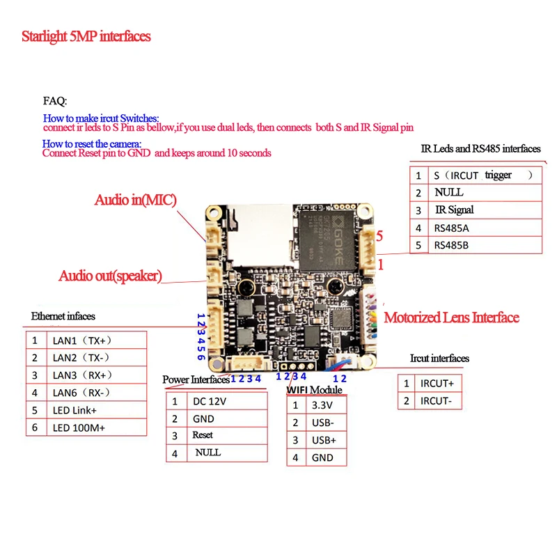 1 * photoresistor port, support photoresistor input signal actived with picture, IRCUT and IR light |