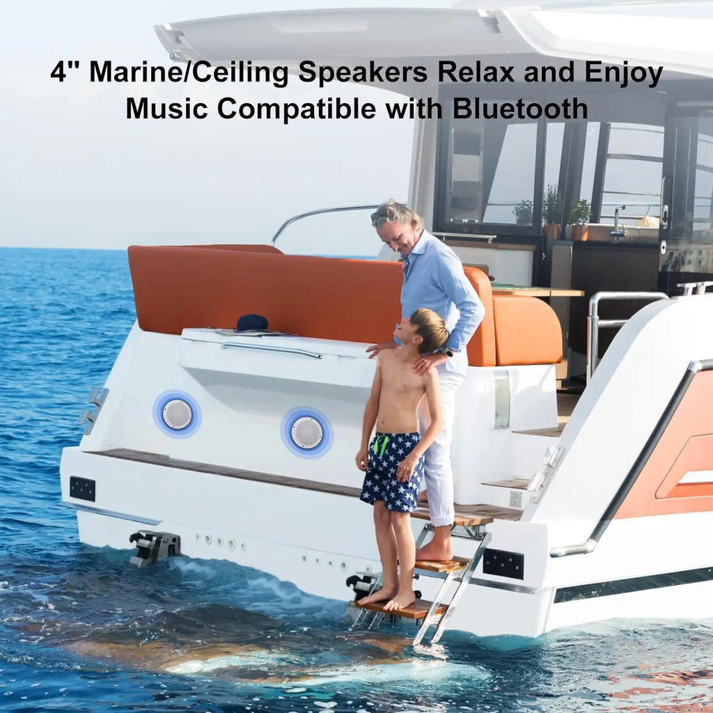 Herdio 4 Inches Waterproof Marine Bluetooth Ceiling Speakers For Bathroom Kitchen Home Outdoor Camper Golf Cart Boat with Flush